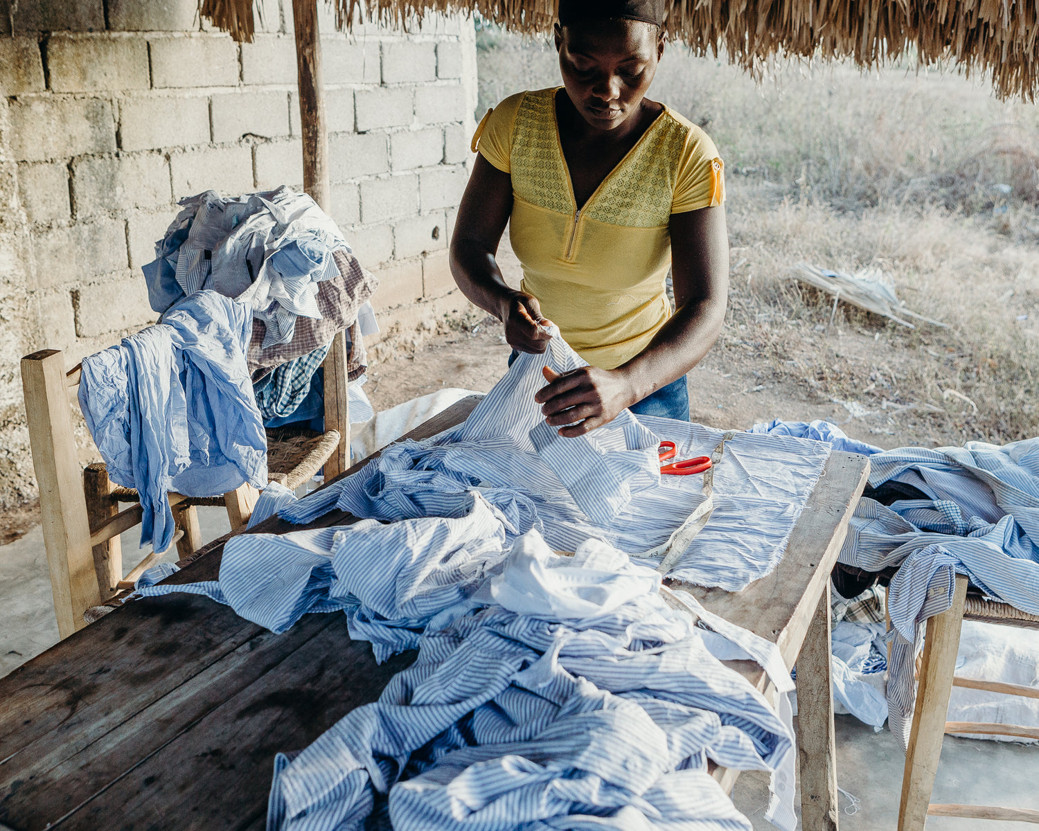 A lot of our textiles are sourced from overstock and remnant cut-offs from larger factories. Because of the large number of factories in Cambodia, we are able to find really high-quality linens and poplins that would otherwise go into waste. We hand pick each one of these textiles for their drapability and quality.