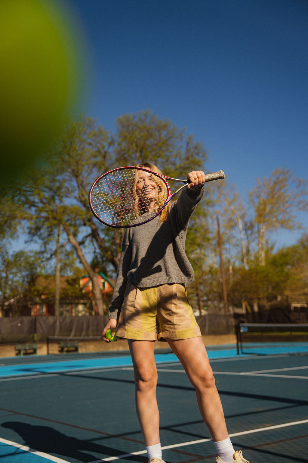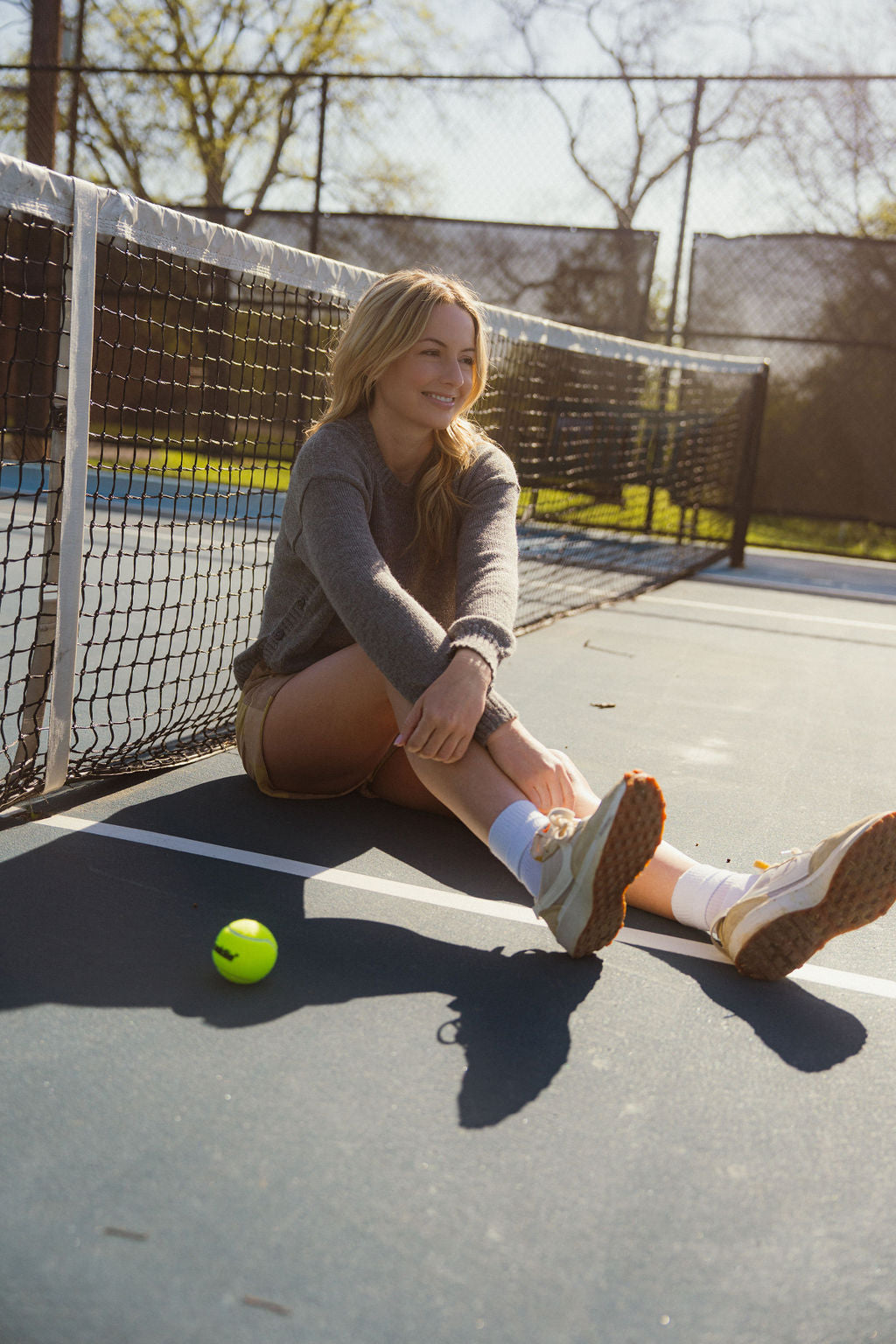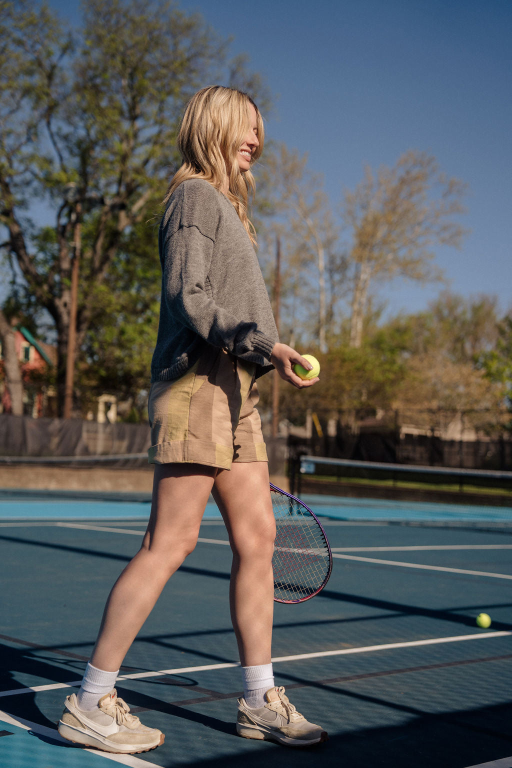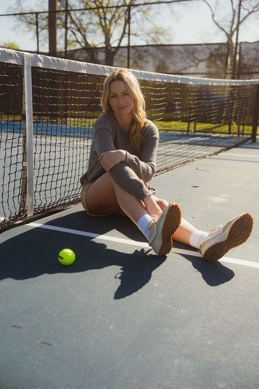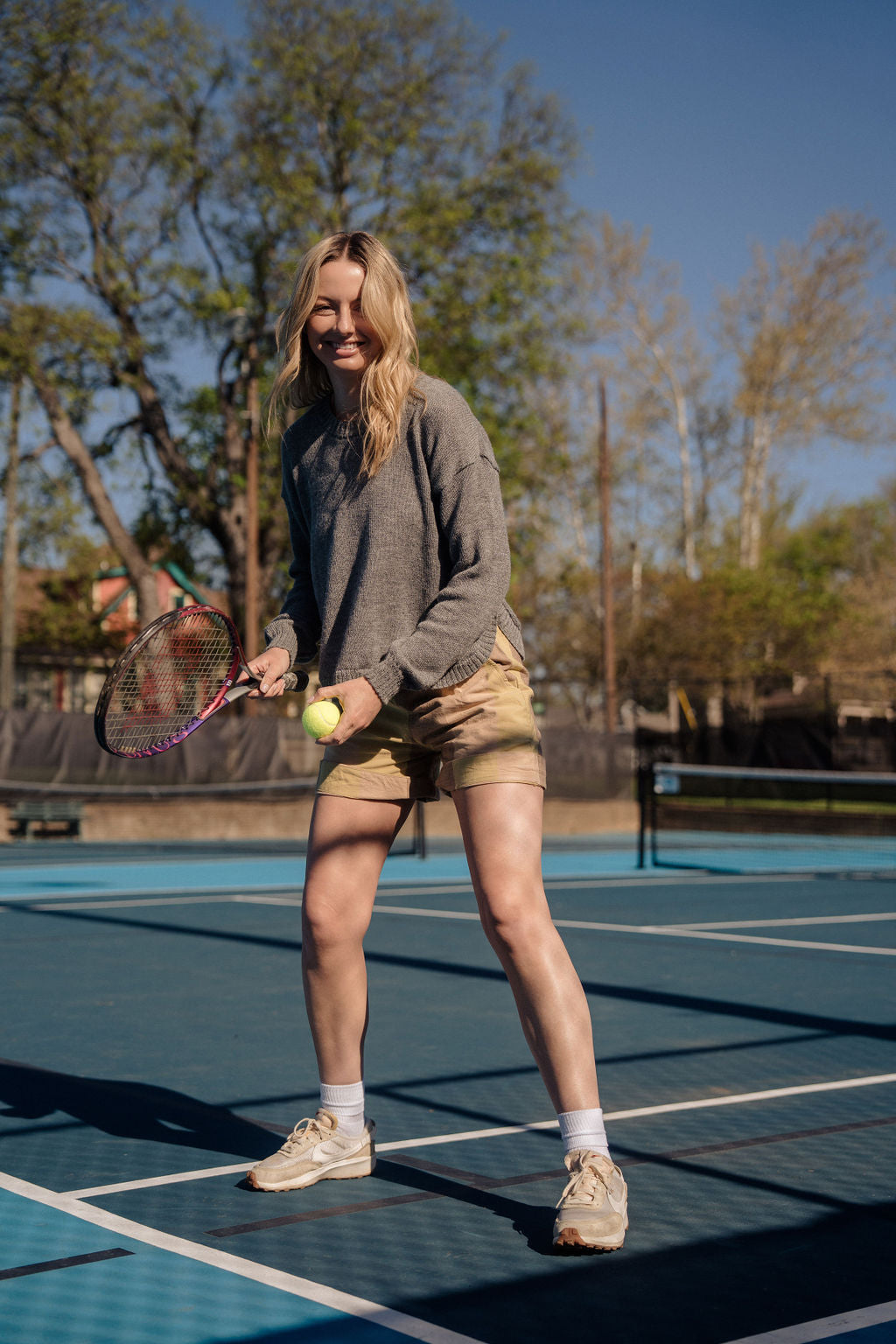 Baby alpaca yarn (meaning the finest grade alpaca from the softest areas of the alpaca's coat). Alpaca is seven times warmer than wool for it's weight AND is highly breathable and moisture wicking. This translates to a sweater that is warm in the winter and cool for the summer.