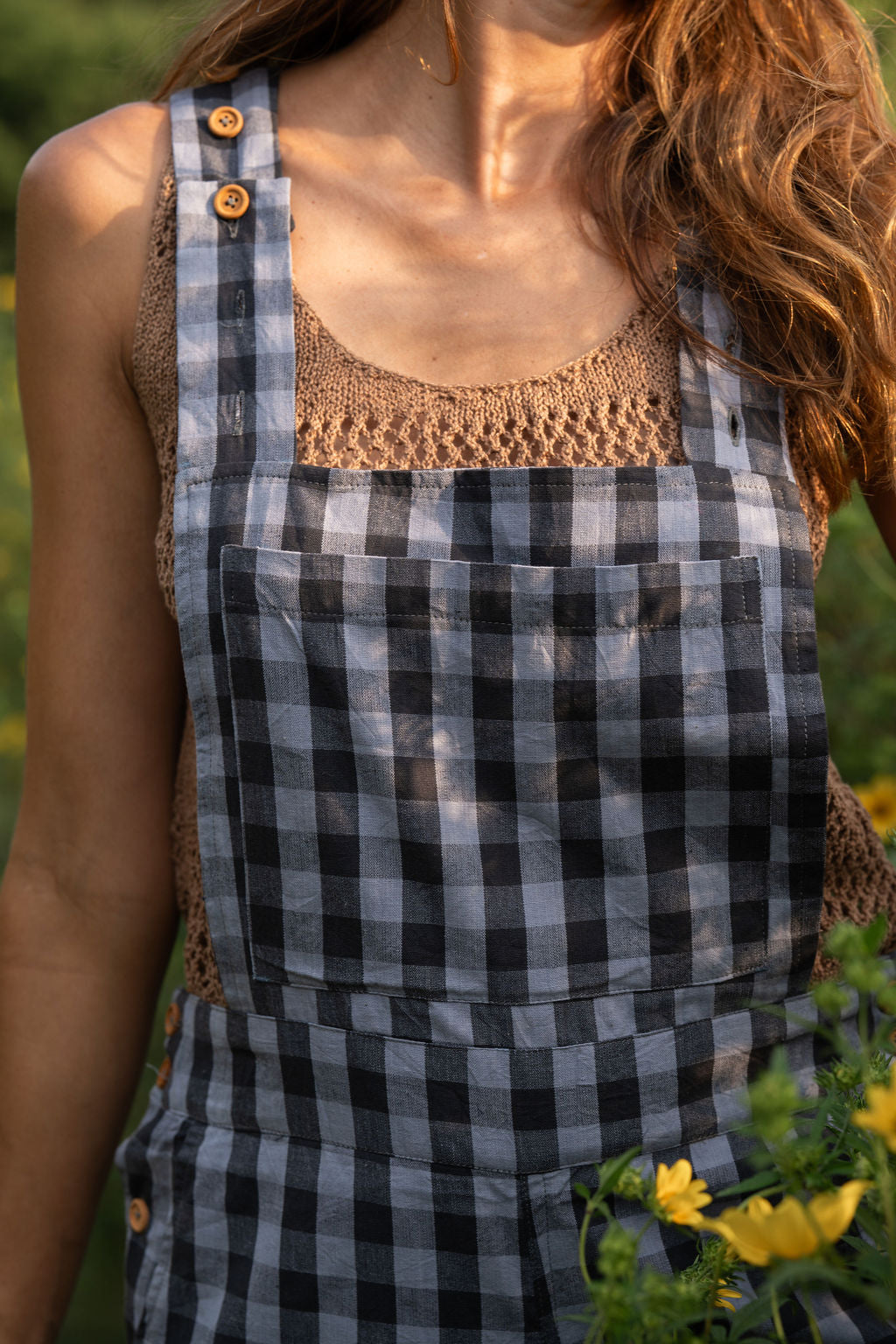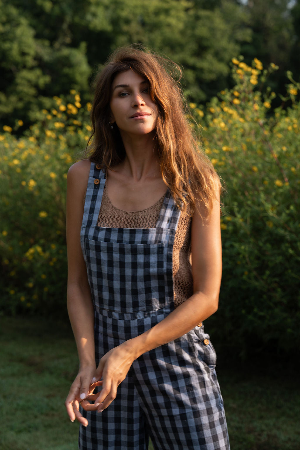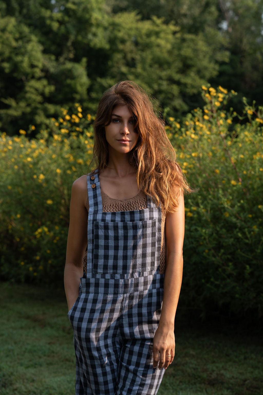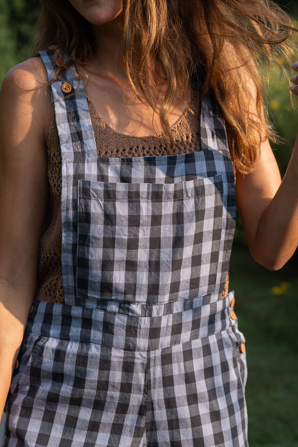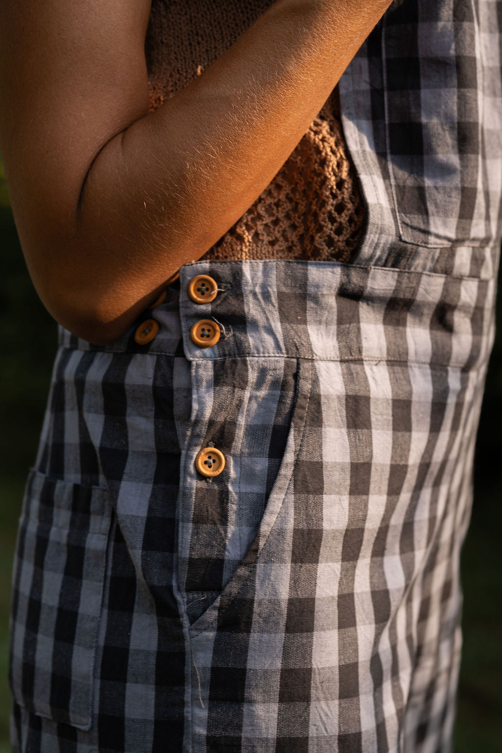 Dilsi Handwoven Cotton Overalls in Blue Gingham Made to Order