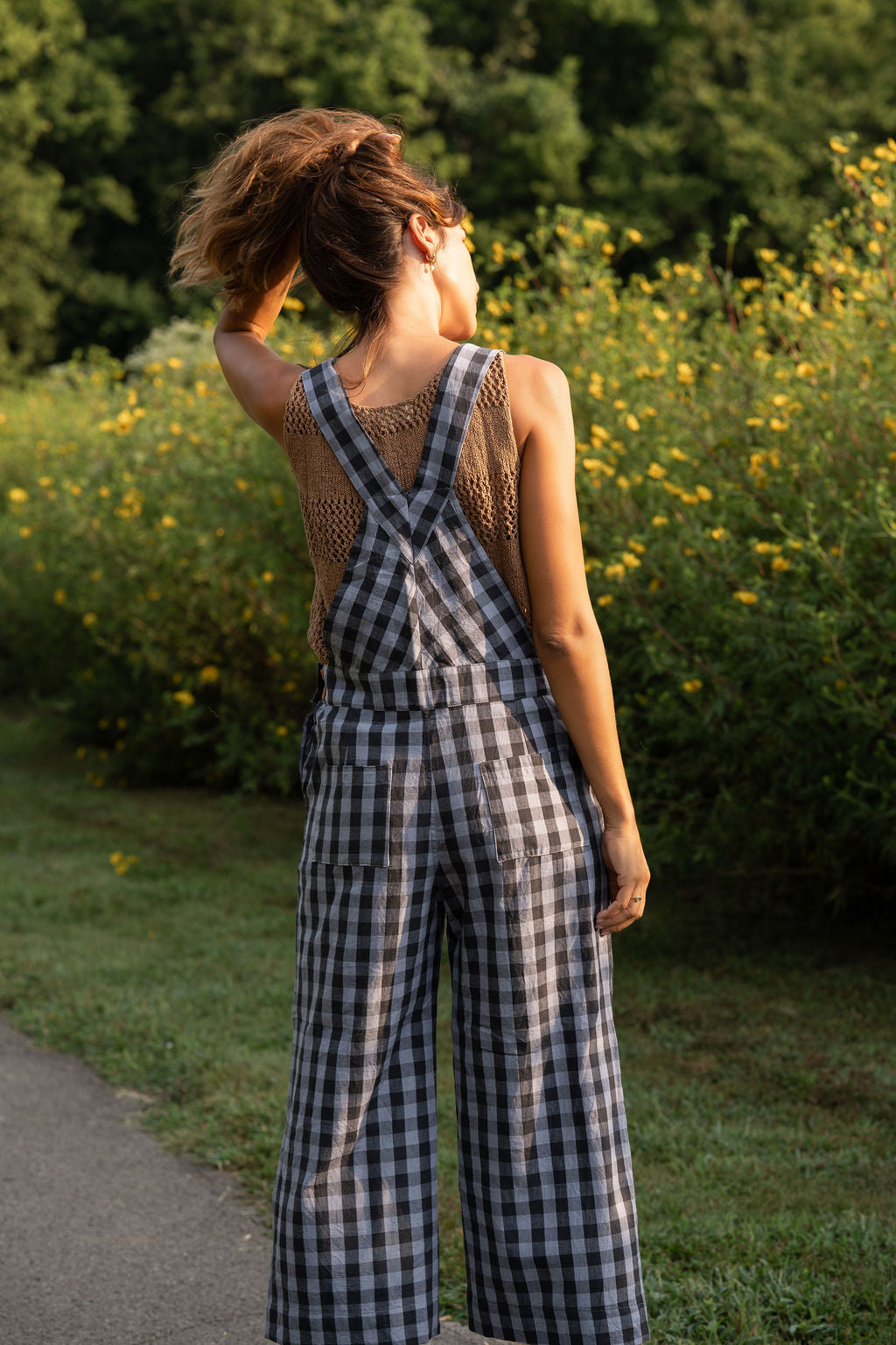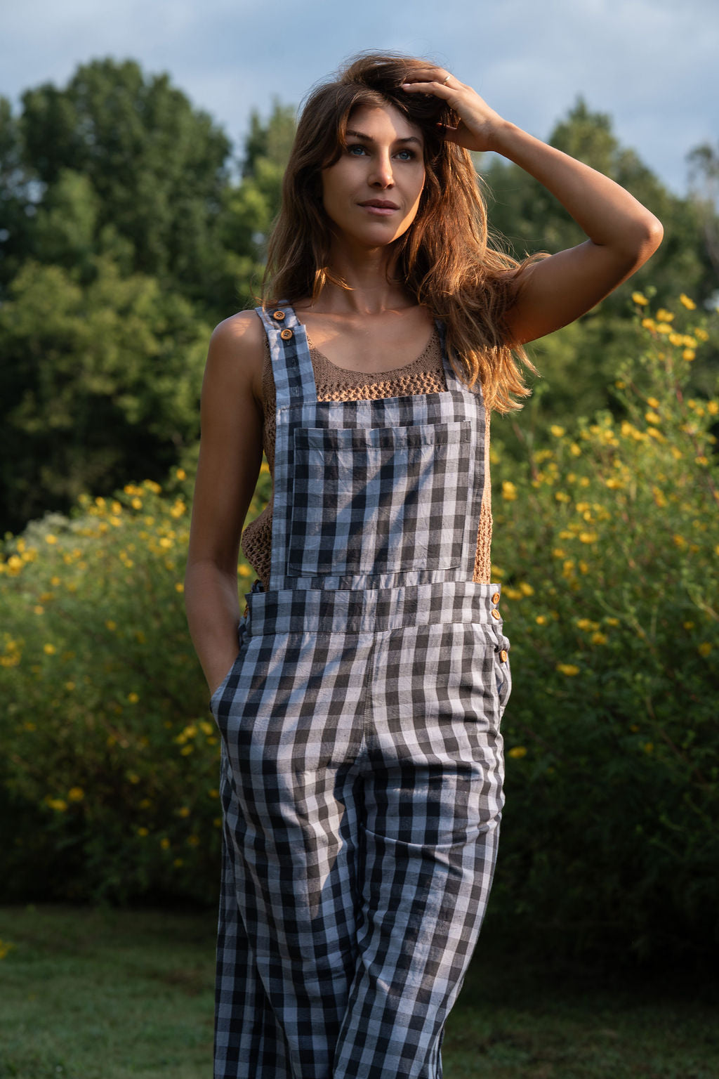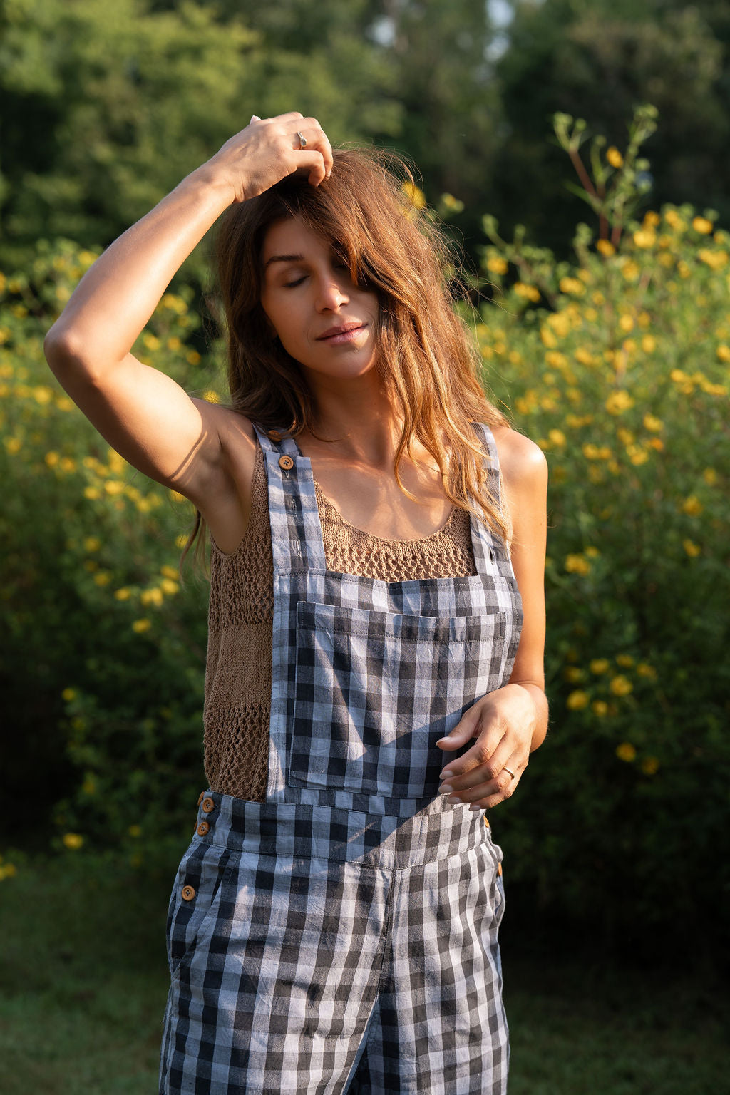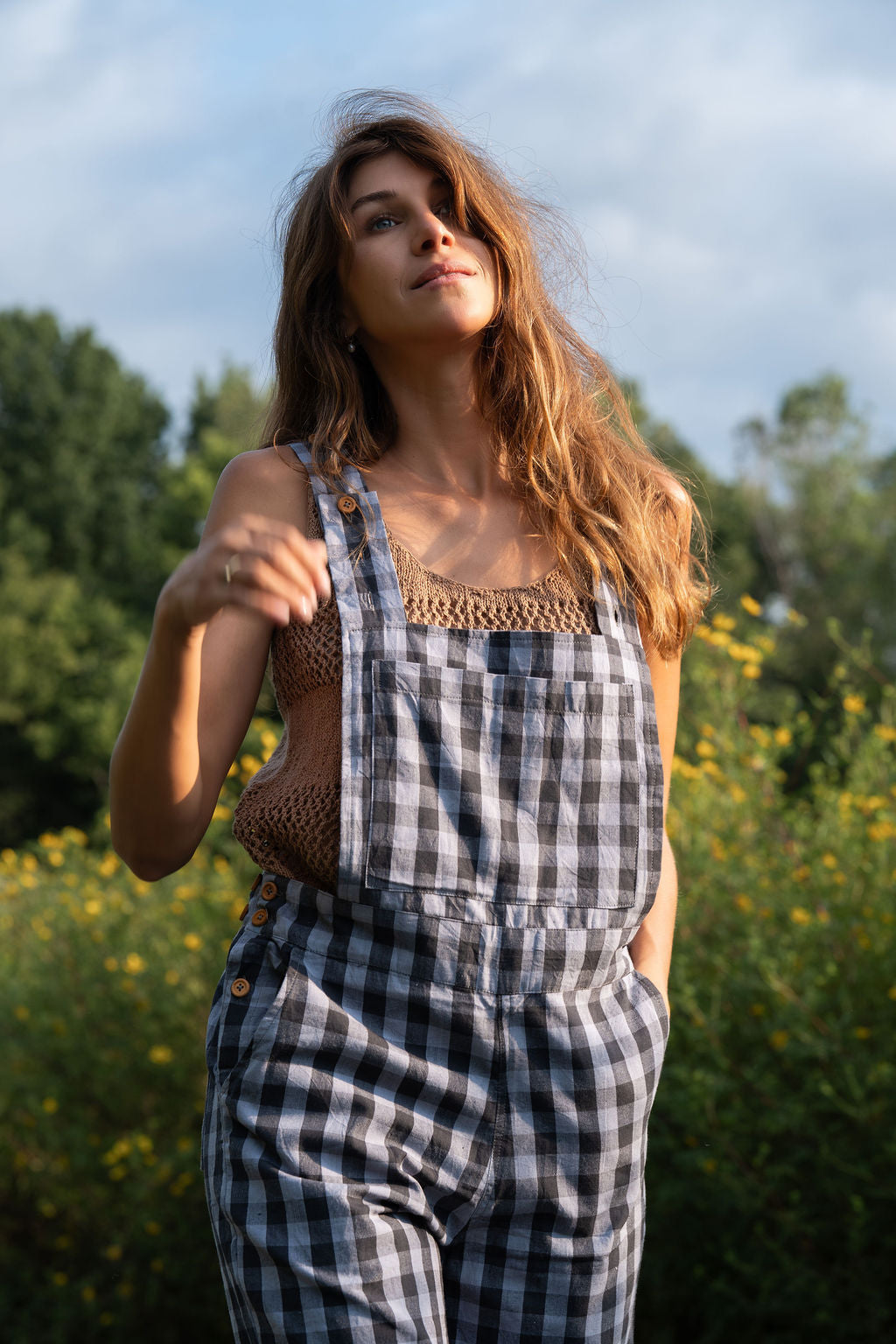 Dilsi Handwoven Cotton Overalls in Blue Gingham Made to Order