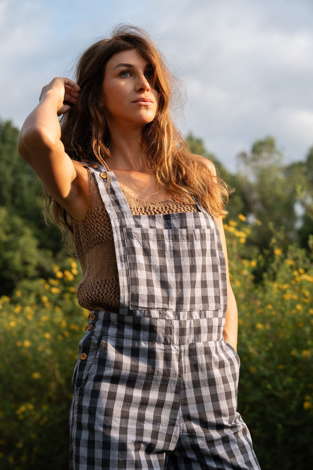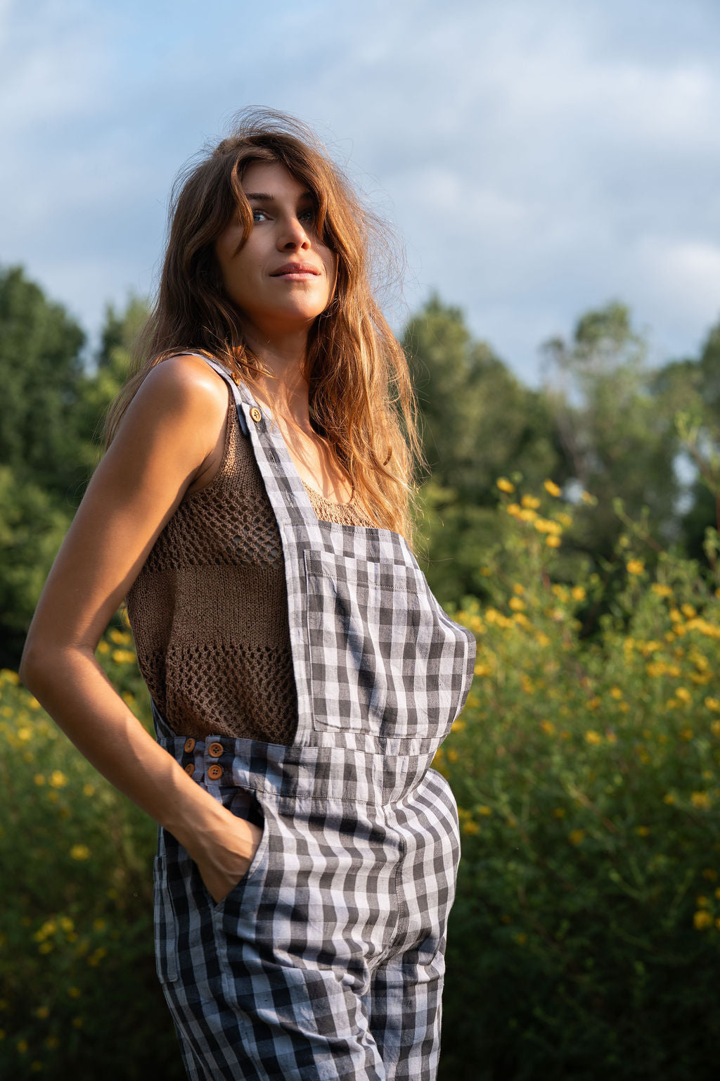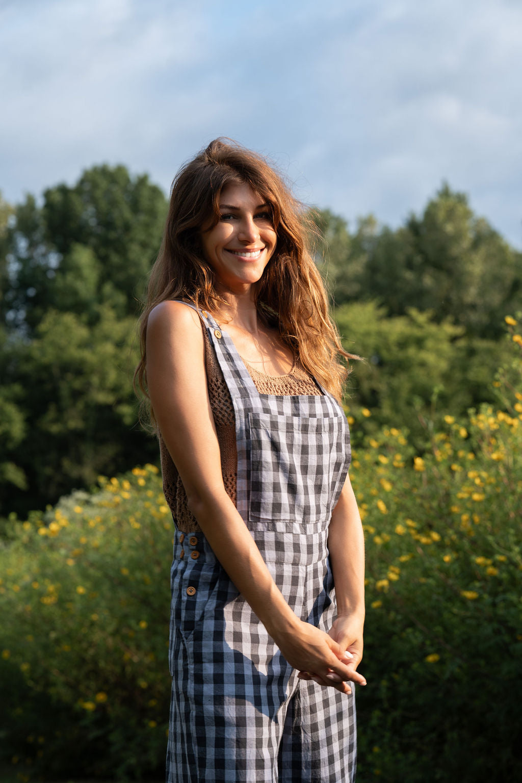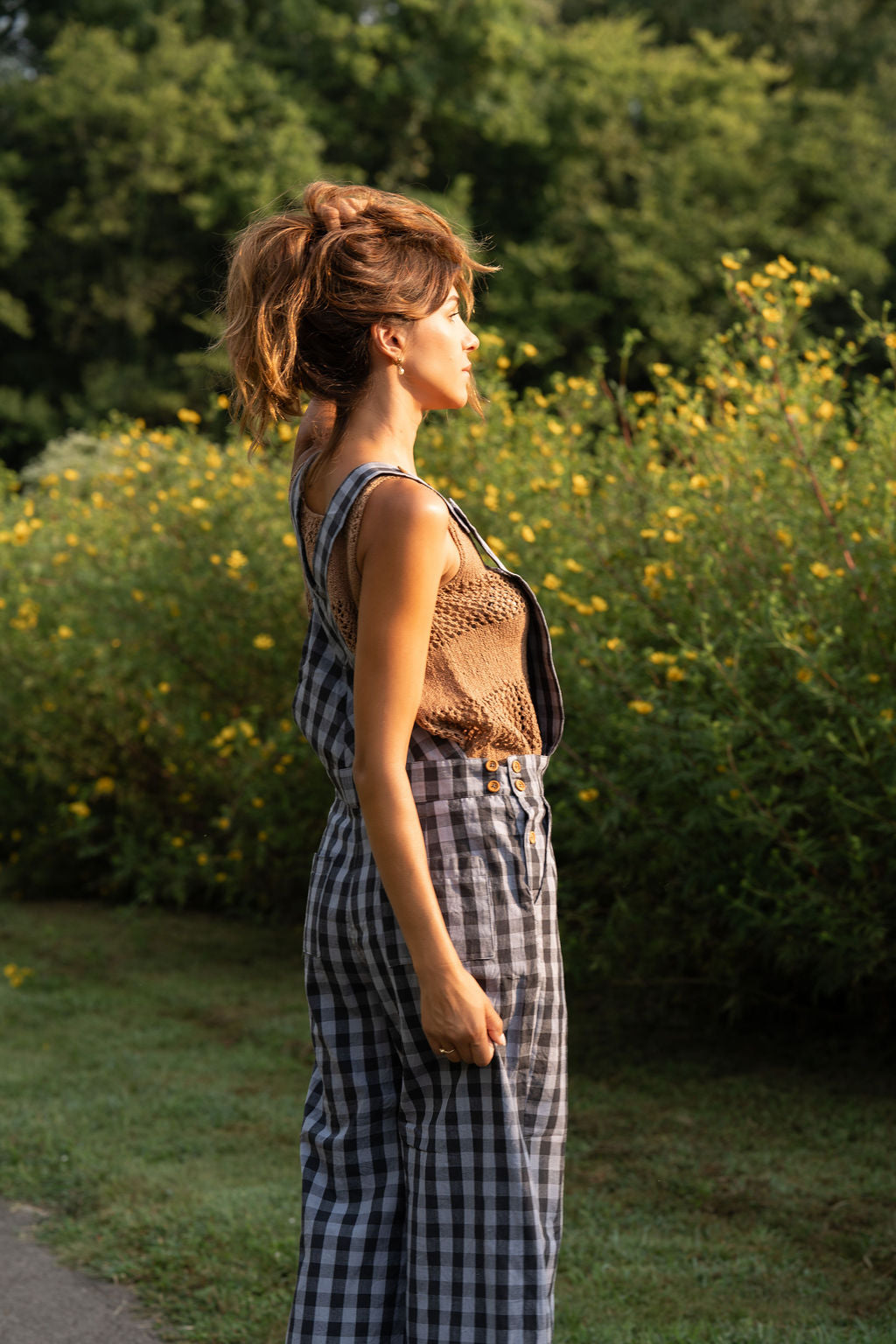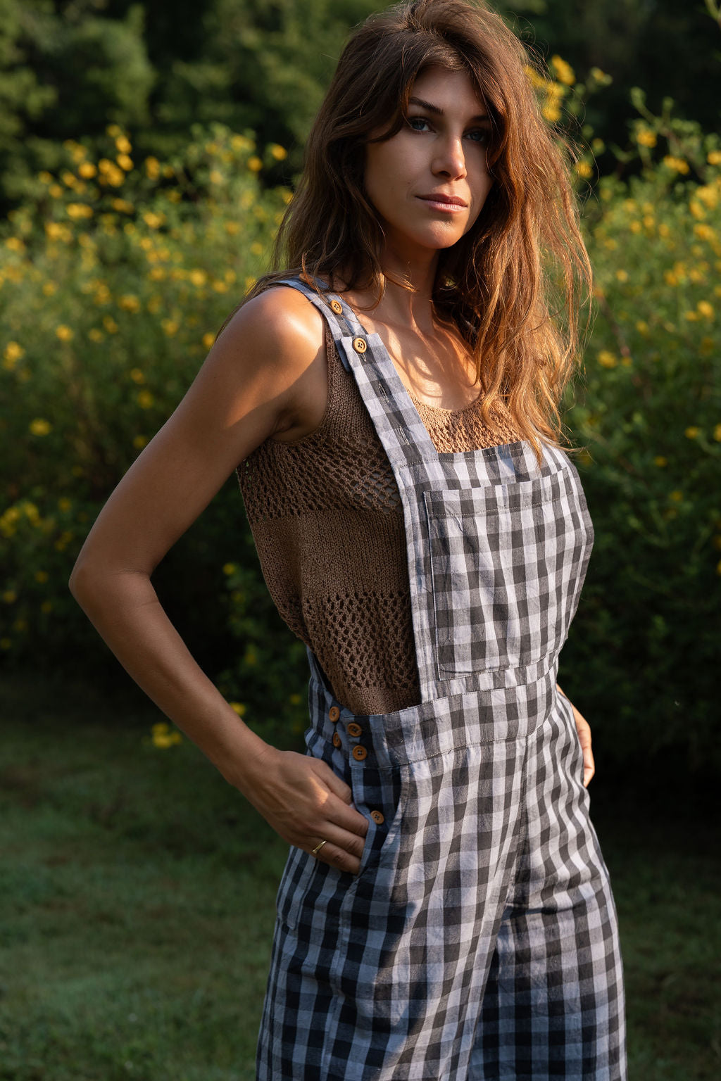 Dilsi Handwoven Cotton Overalls in Blue Gingham Made to Order