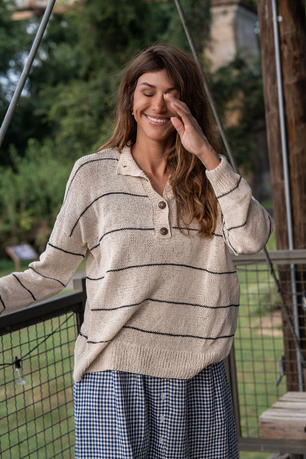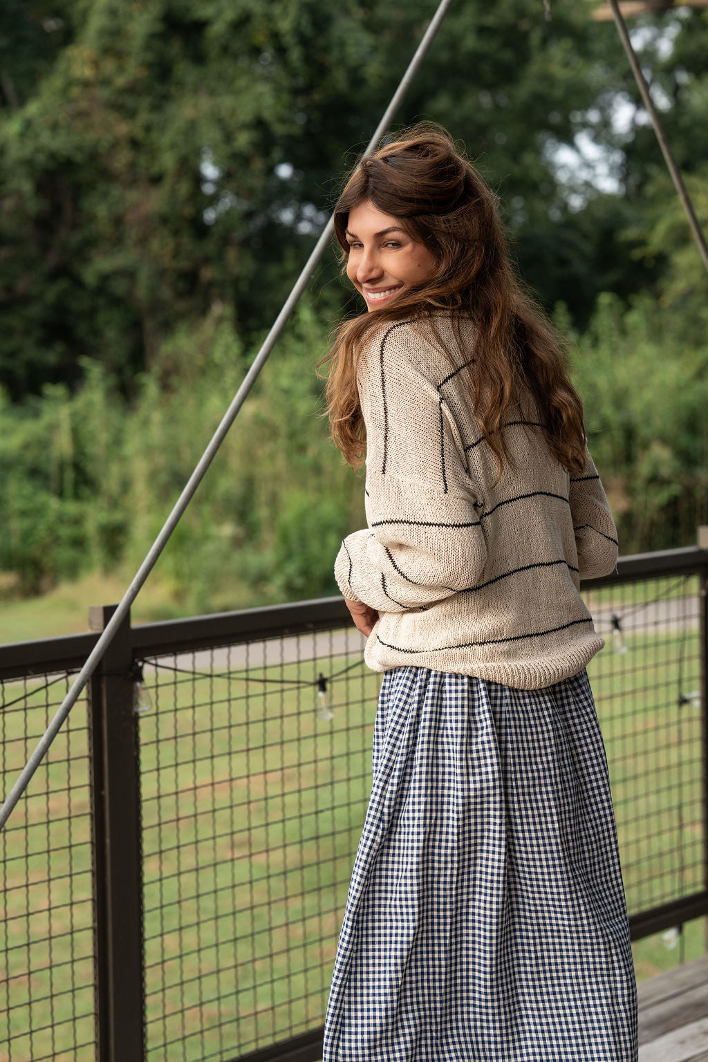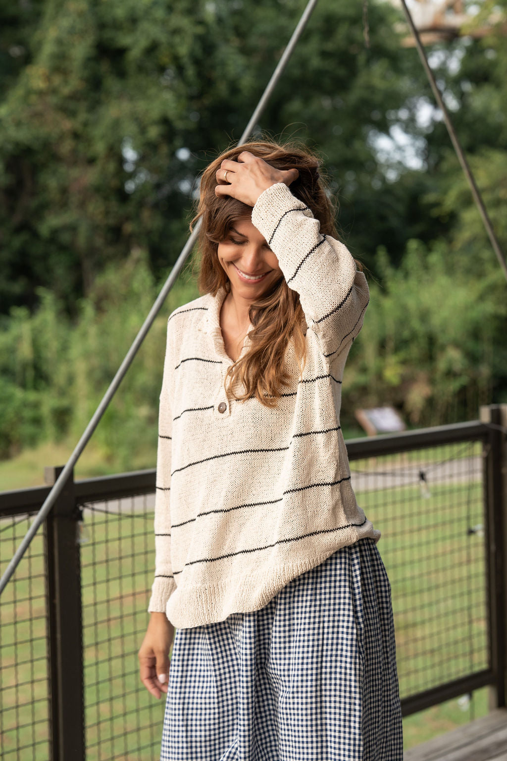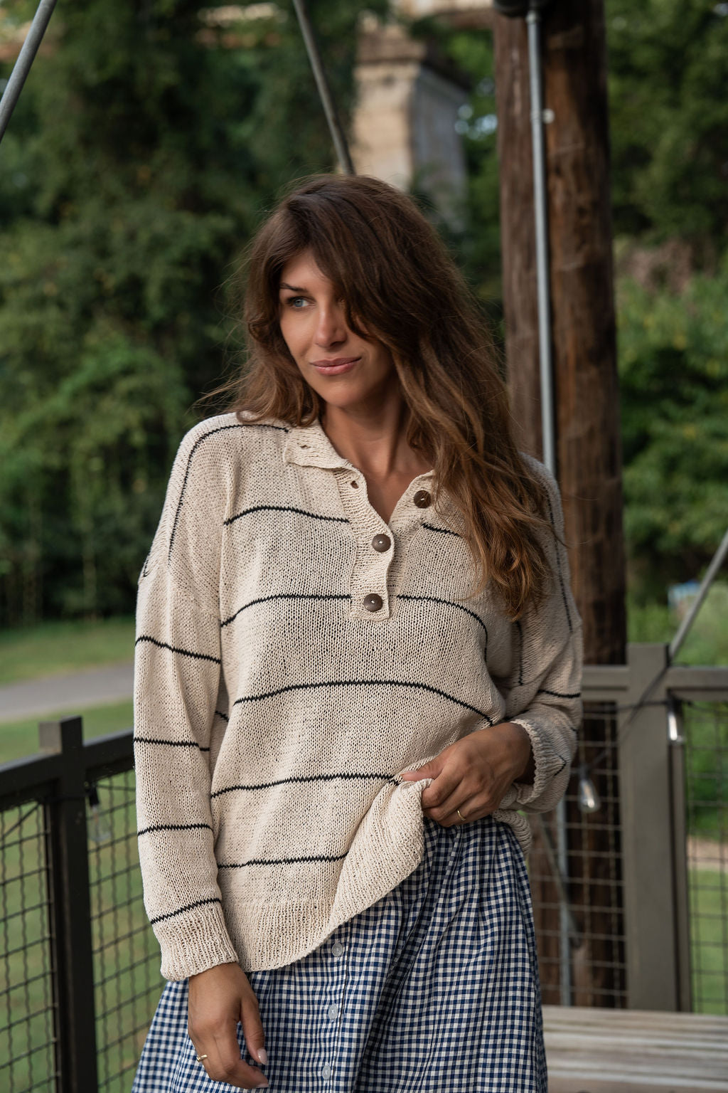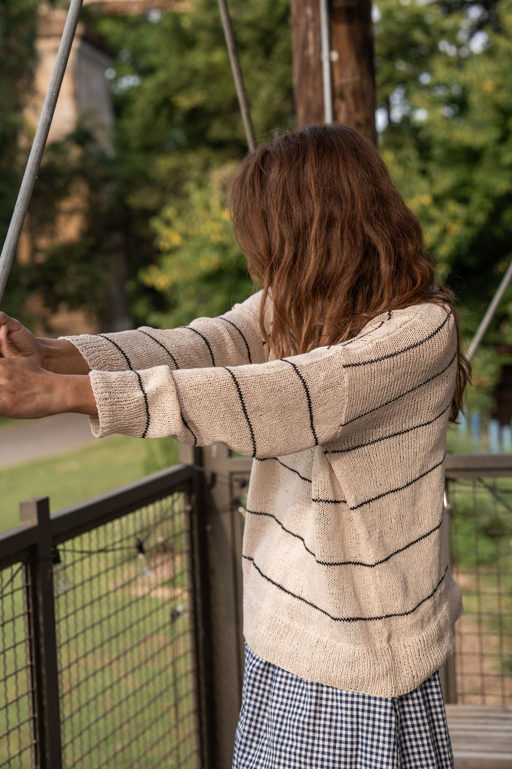 Dorothy Cotton Sweater in Cream and Black Stripe Made to Order