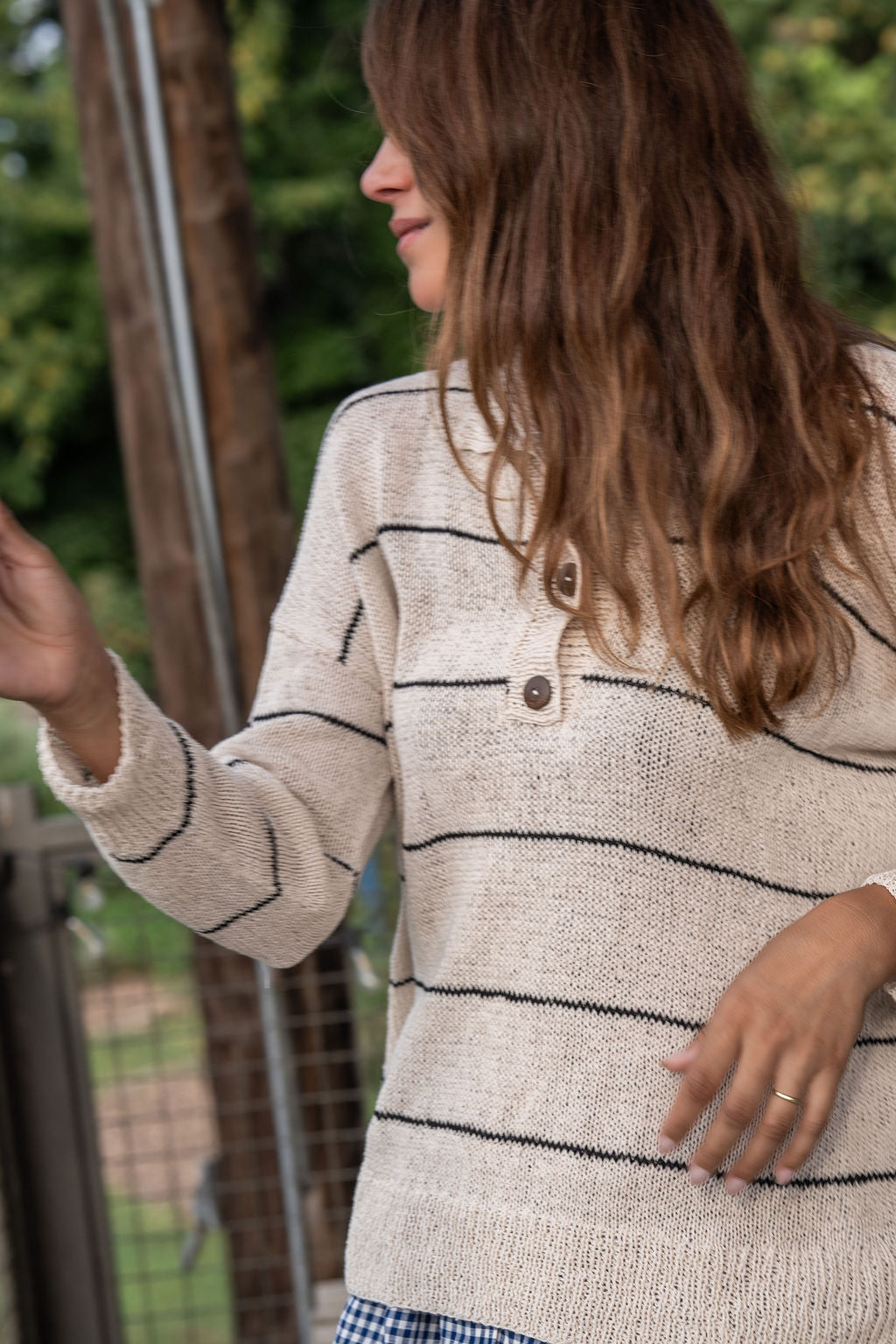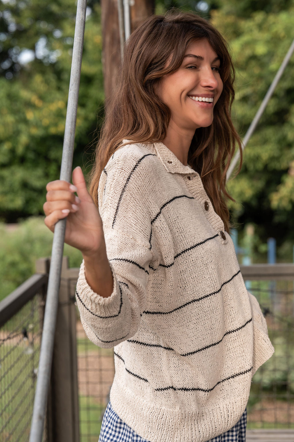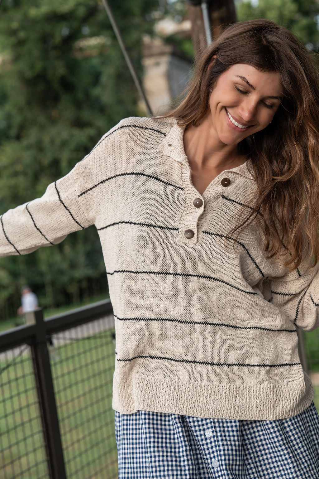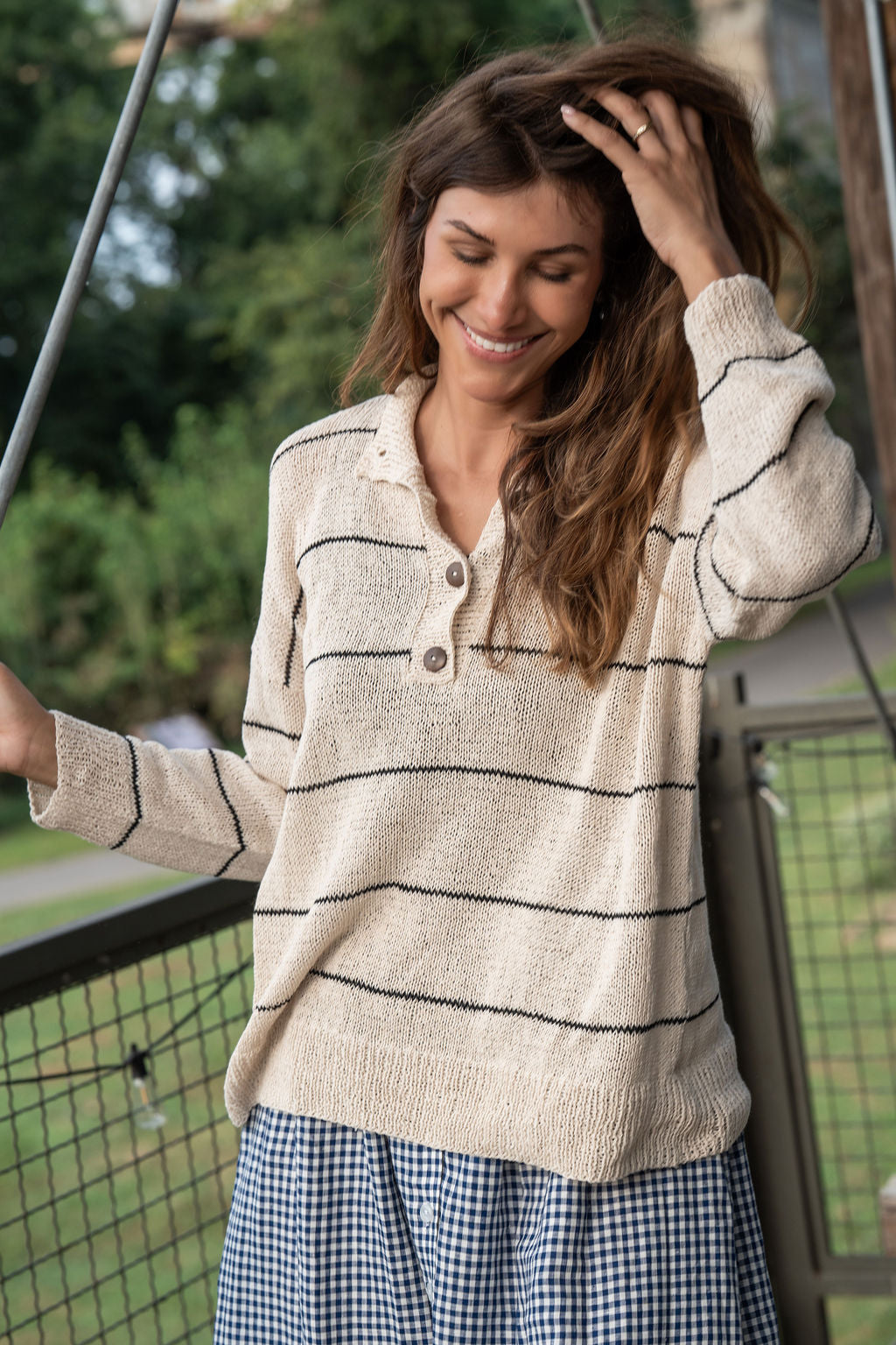 Dorothy Cotton Sweater in Cream and Black Stripe Made to Order