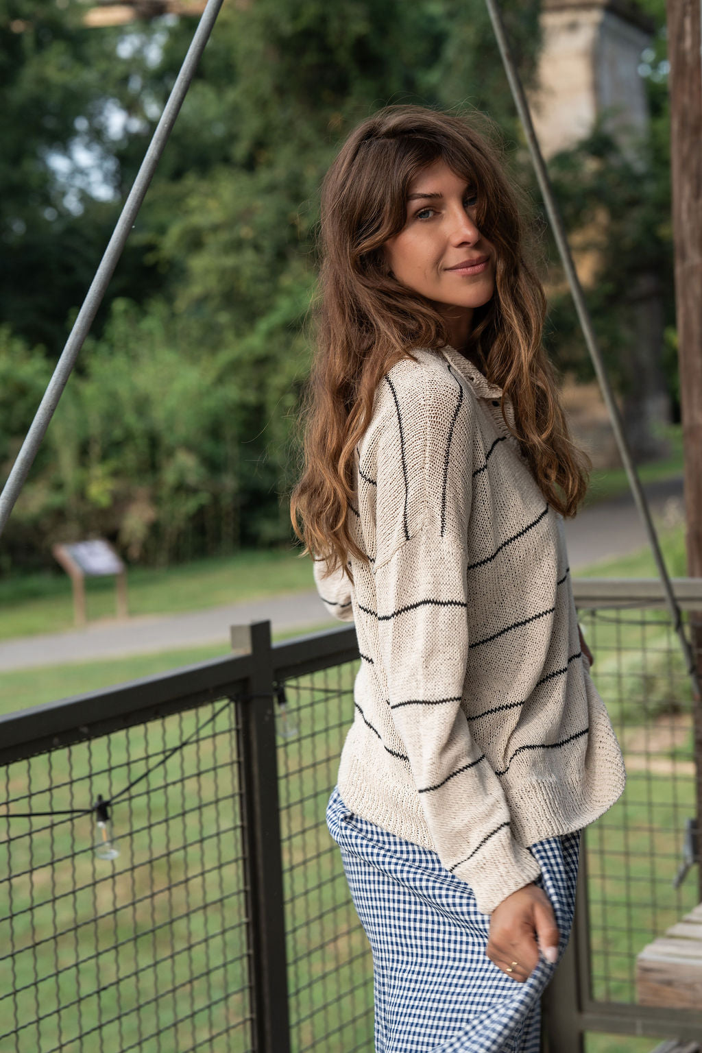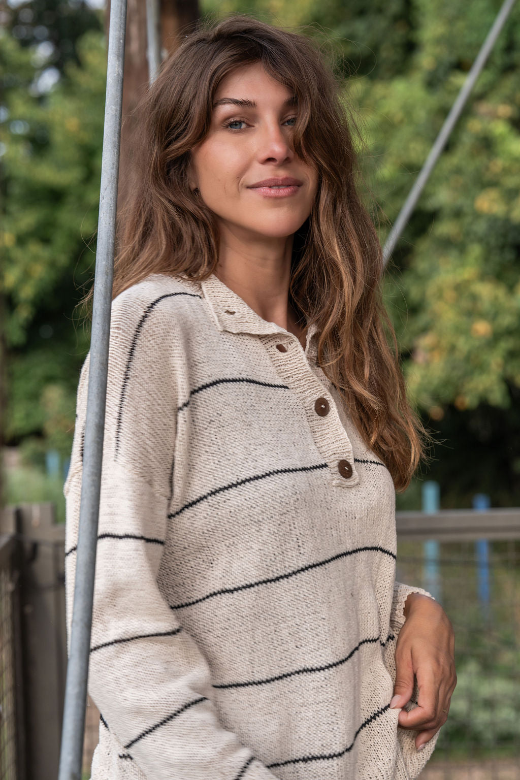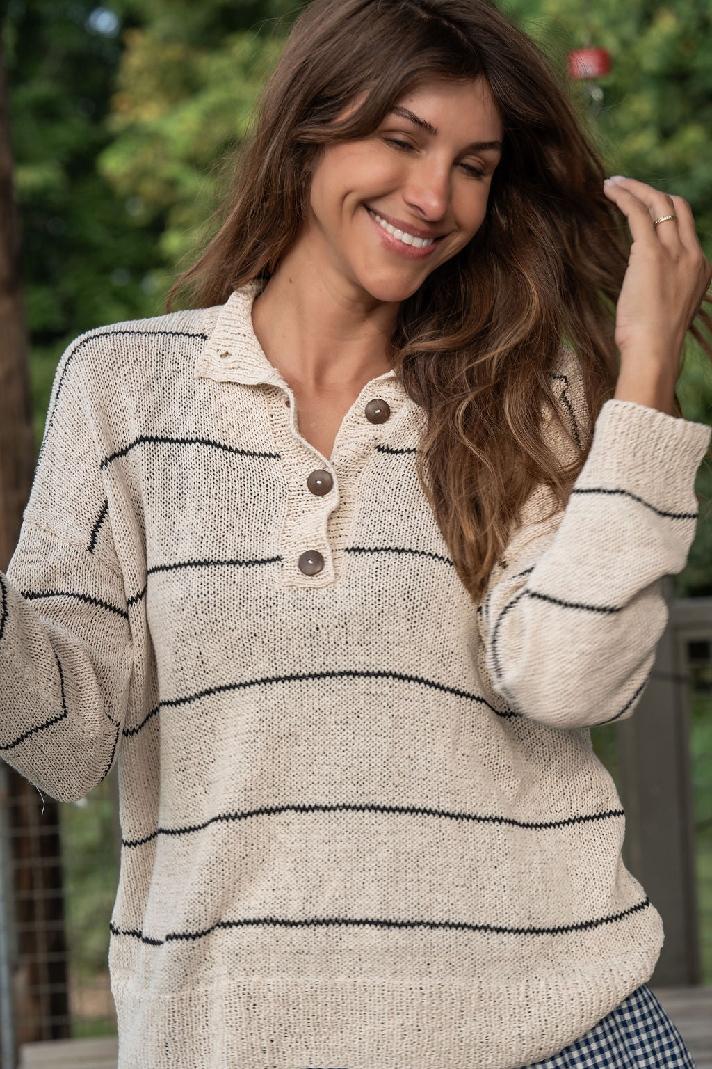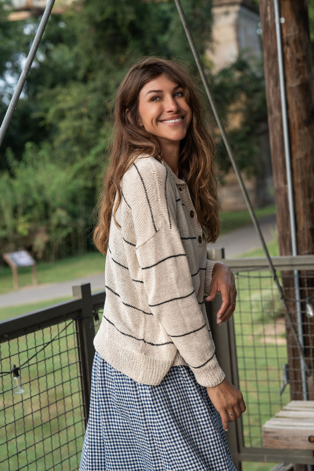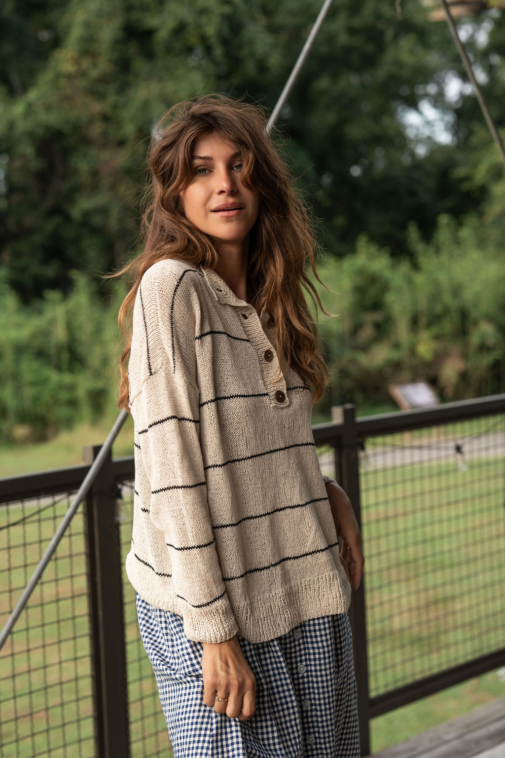 Dorothy Cotton Sweater in Cream and Black Stripe Made to Order