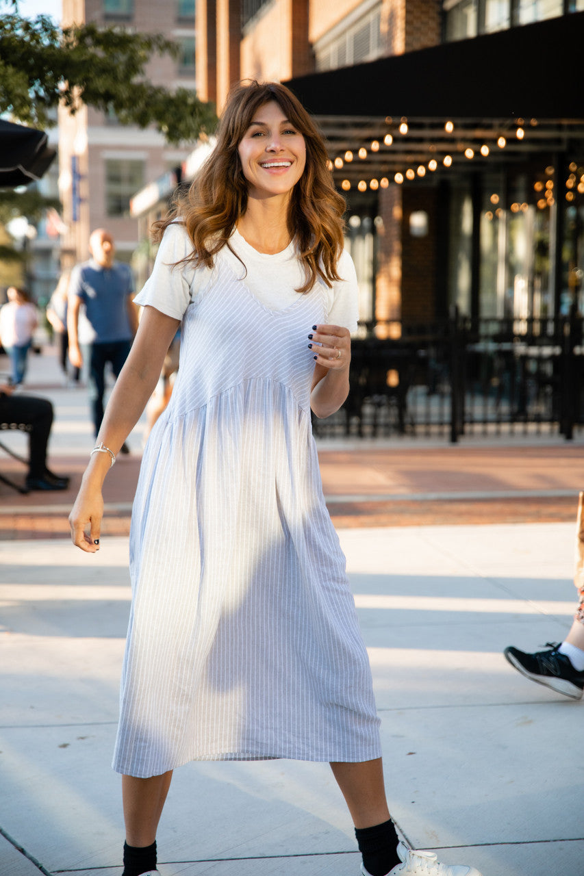 Faro Dress in Recycled Beige and White Linen Made to Order