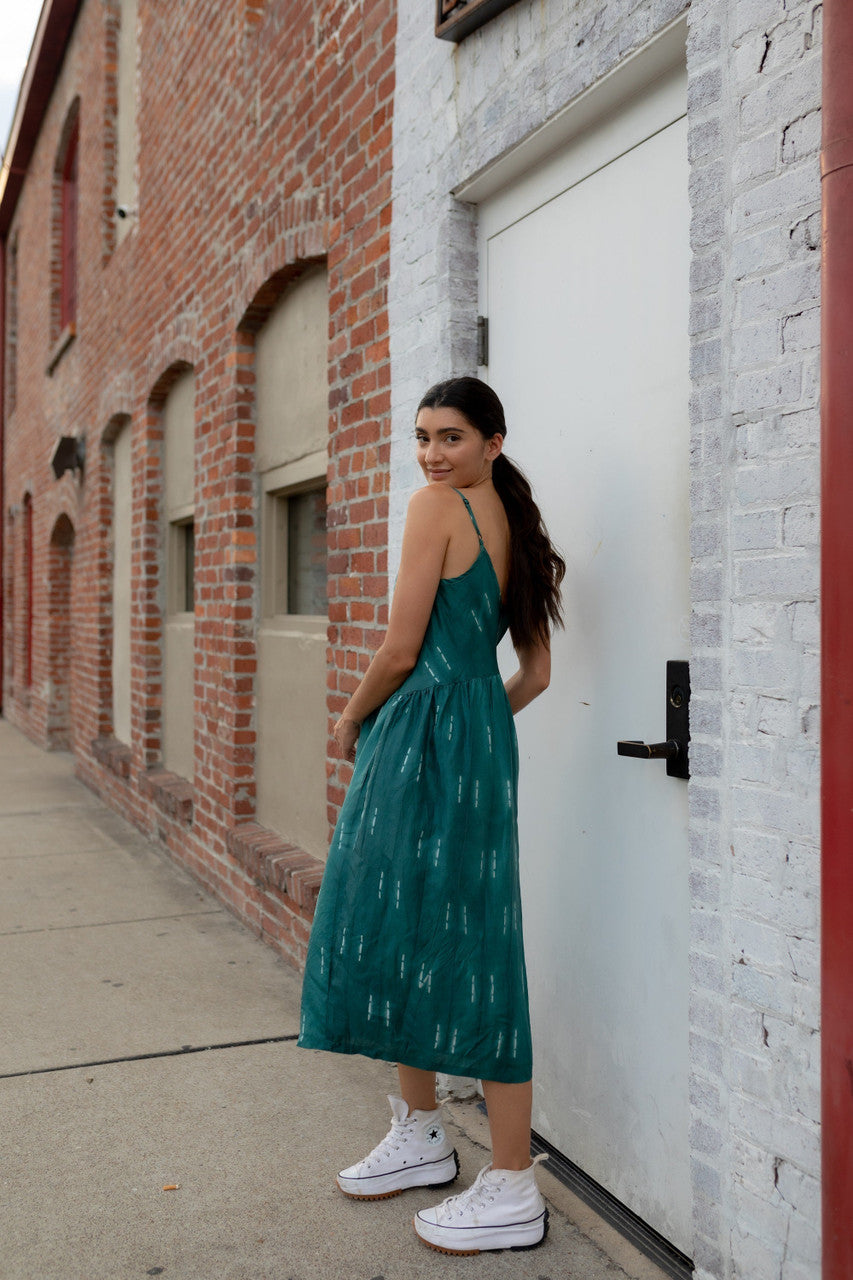 This dress is made of nice fabric, but for whatever reason, it looks nothing like it does on the model. I have a very similar body type, and I emailed to ask what size they recommended (since I am between XS and S) and went with their suggestion of size S. It lays really strangely in the back, the pleats do not lay as flat as pictured and it makes my body look WEIRD. Also, one of the straps cannot adjust as far as it should because it is sewn incorrectly.