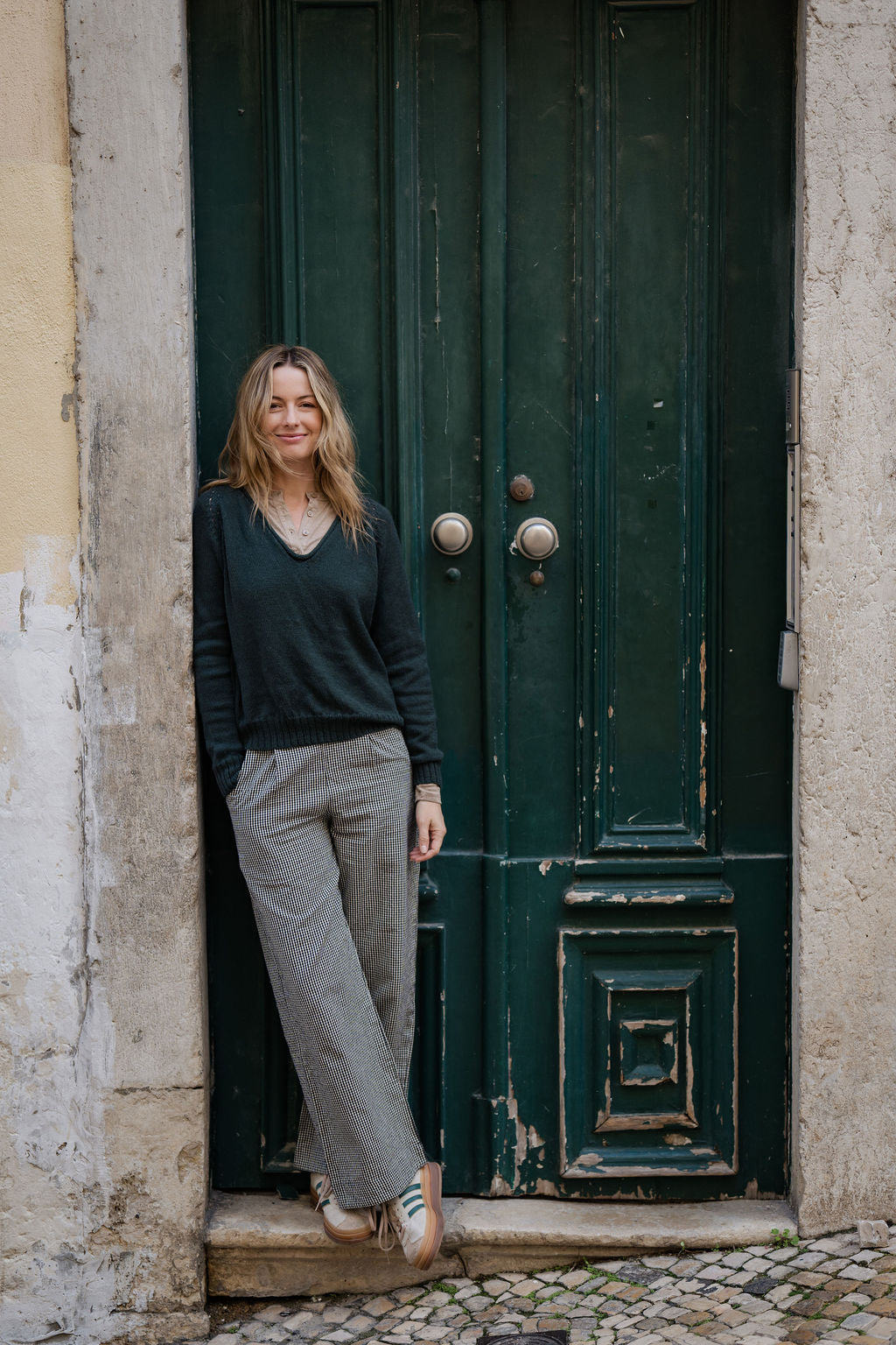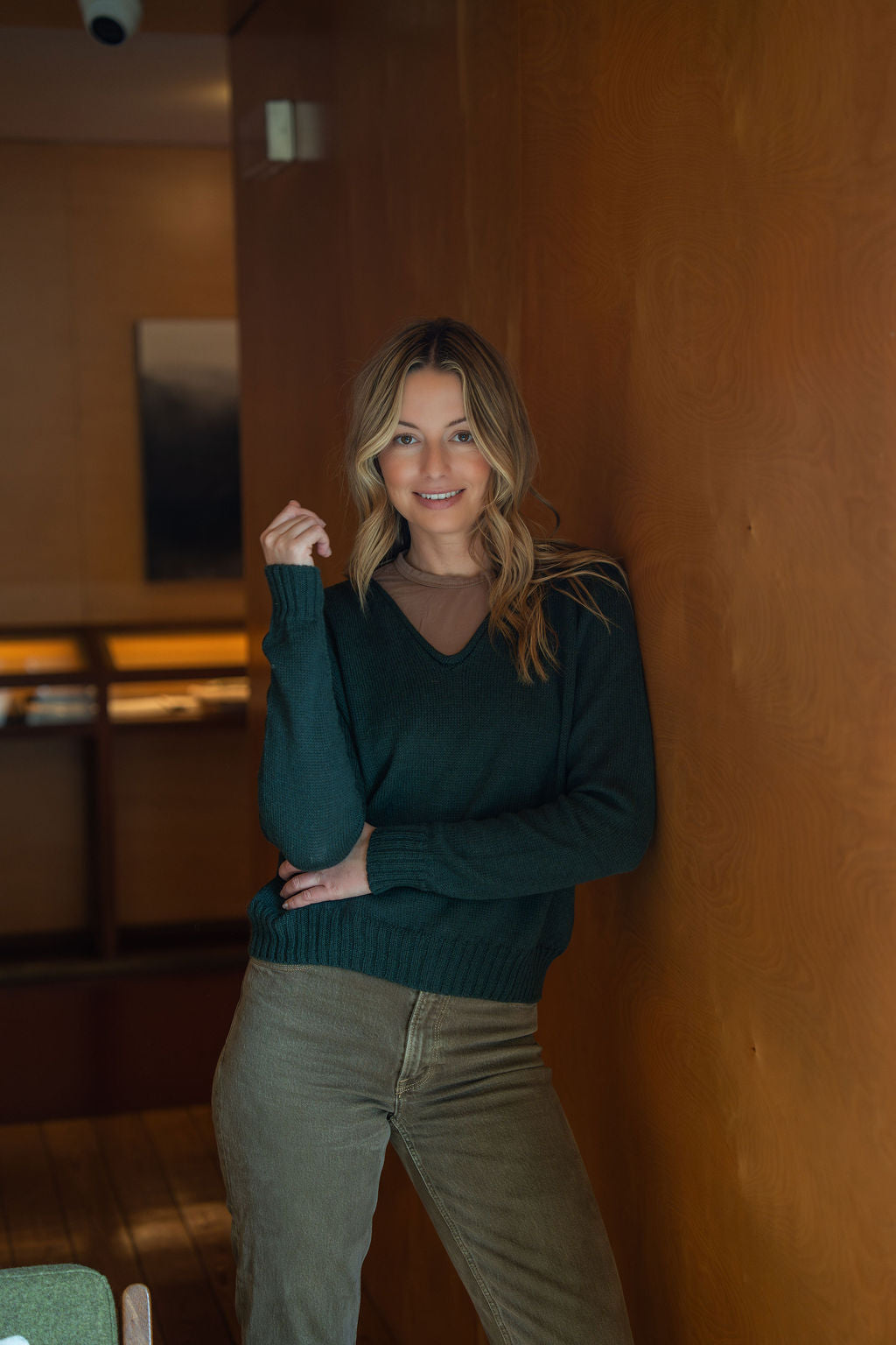Easy pullover alpaca sweater with decorative raglan sleeve seam with rolled slight v-neckline. Alpaca is super soft and sourced from small farms in the Andes Mountains. Hand knit by a small women's cooperative in Bolivia - giving women an income from their own home.