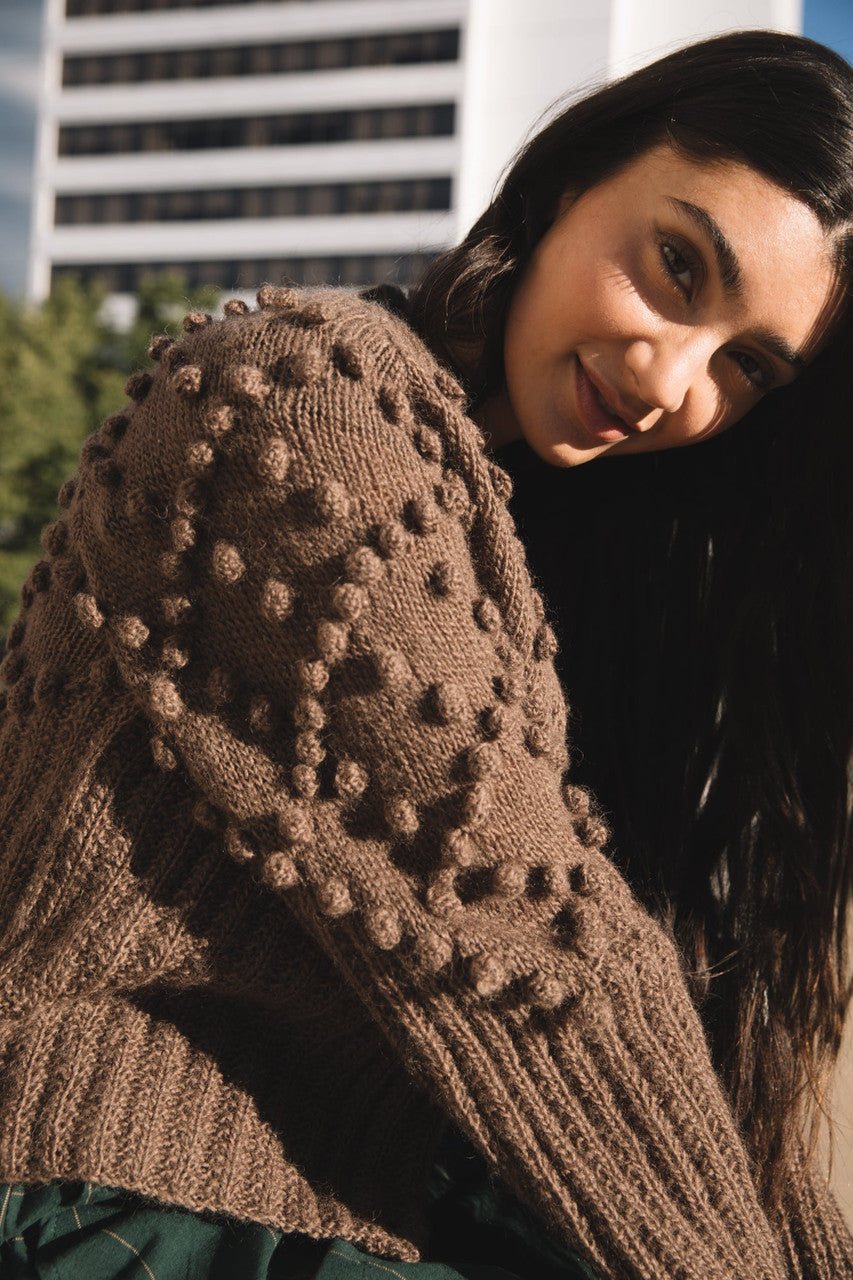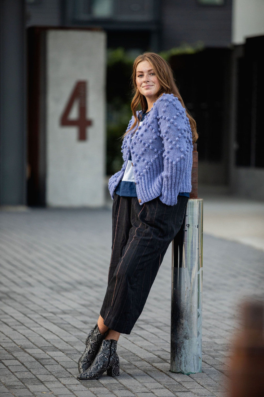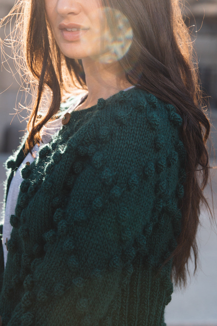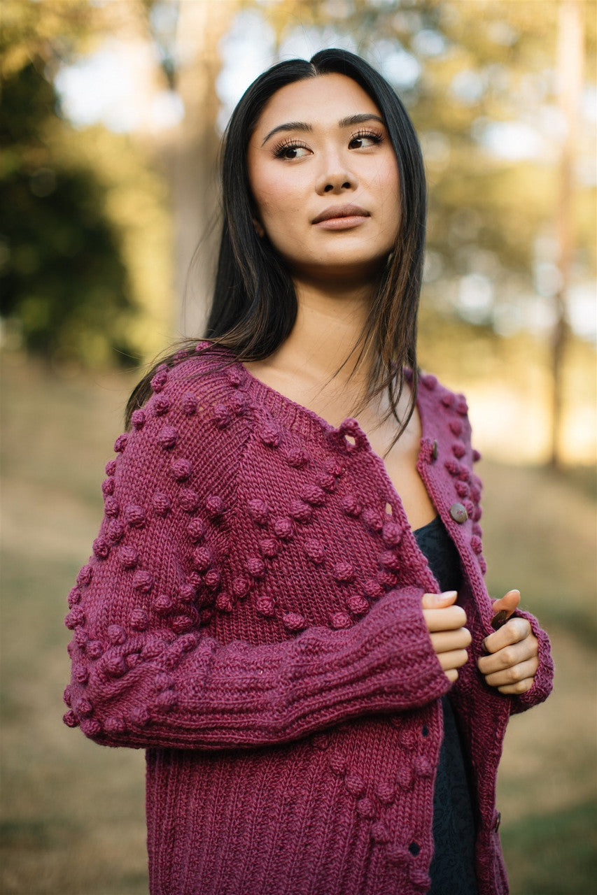 Vintage inspired cardigan with textured knit. Hand dyed, high quality wool sourced from farms in Nepal then hand knit by a fair trade workshop there.