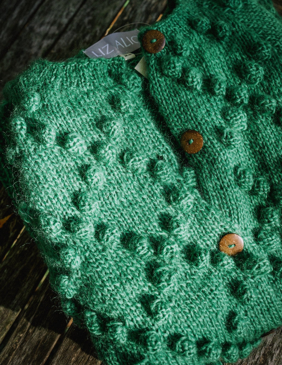 Hand Knit Nepali Wool Jill Sweater in Kelly Green - S