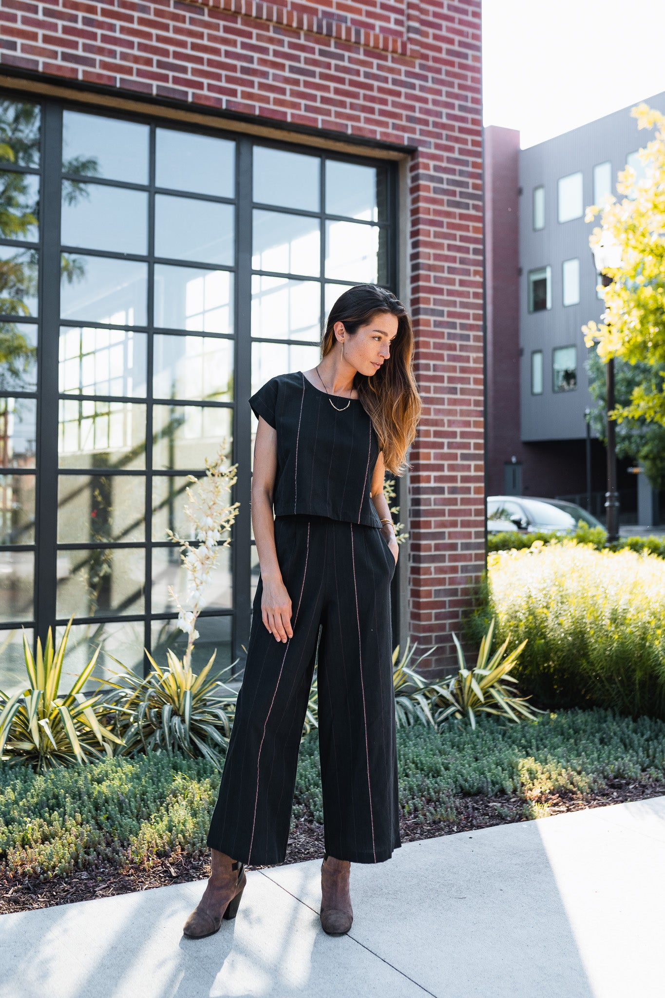 S Pants - waist before any stretch 25 1/2 waist stretches to 36, width at hip 42, inseam length 30 1/2, side seam length 41 1/2, rise 14