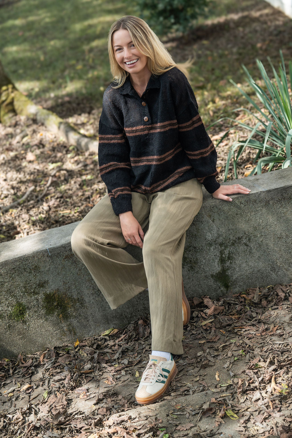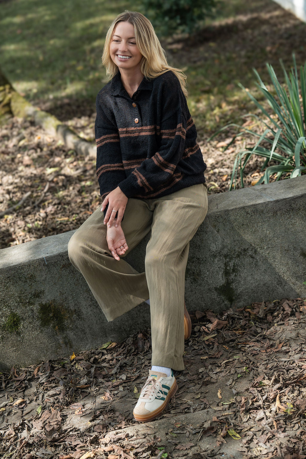 Imogene Oversized Wool Henley in Black and Brown Made to Order