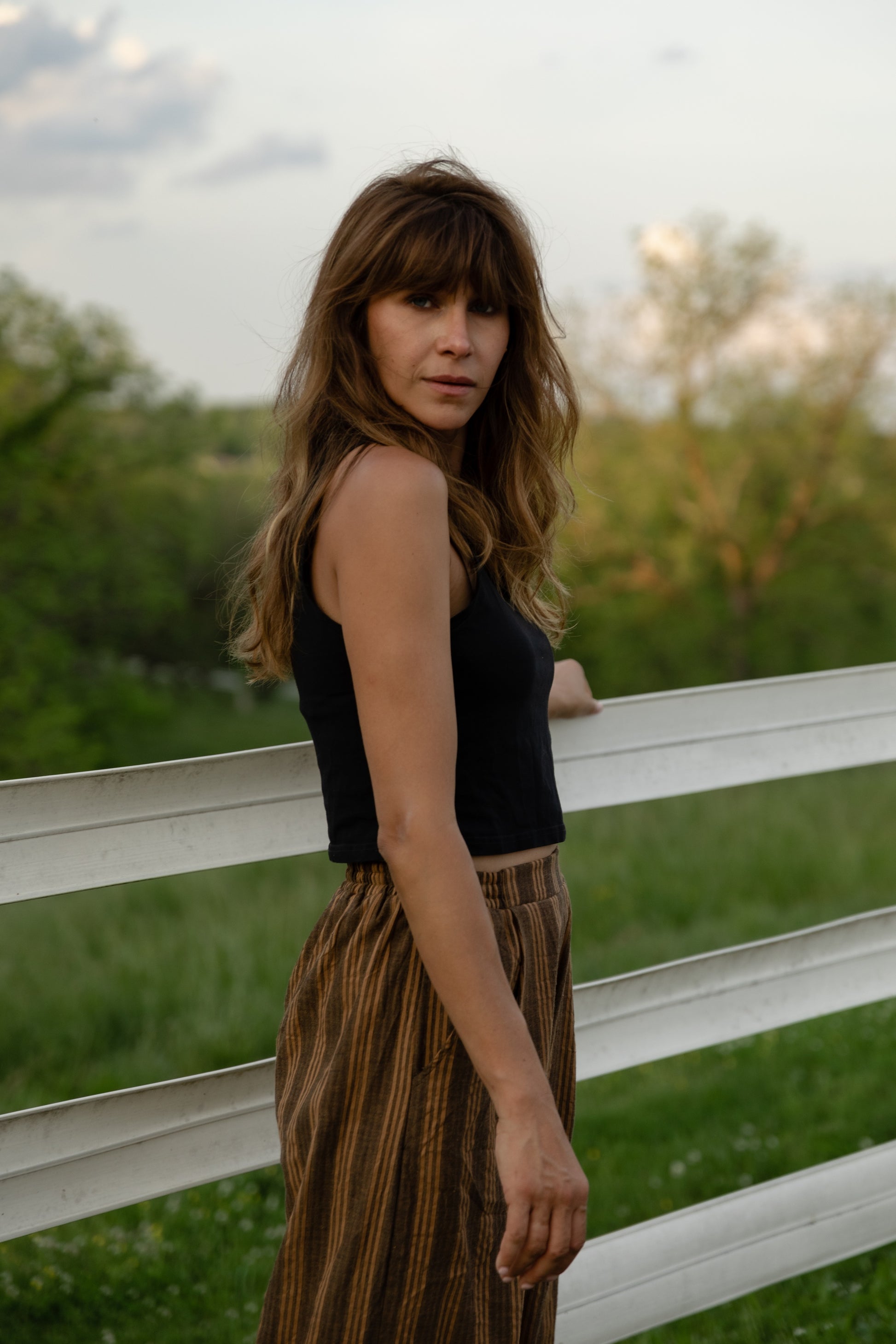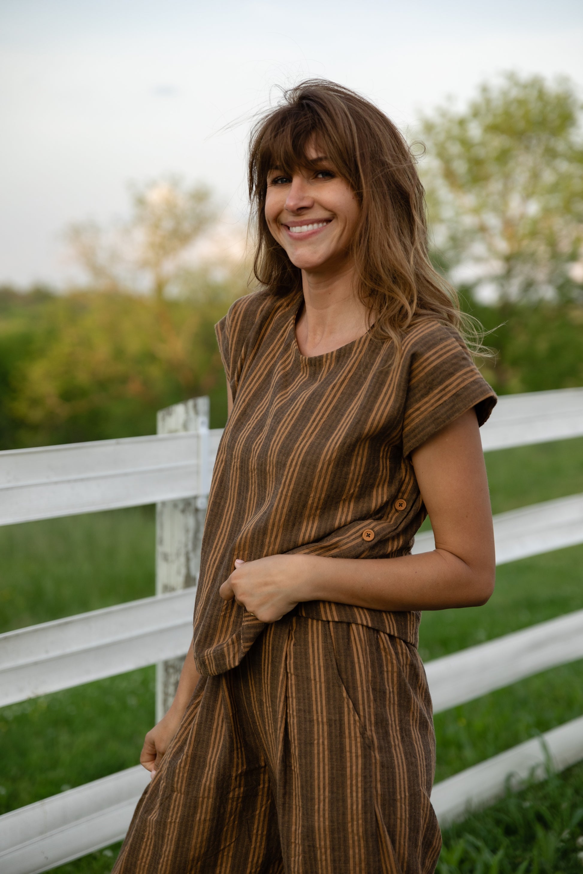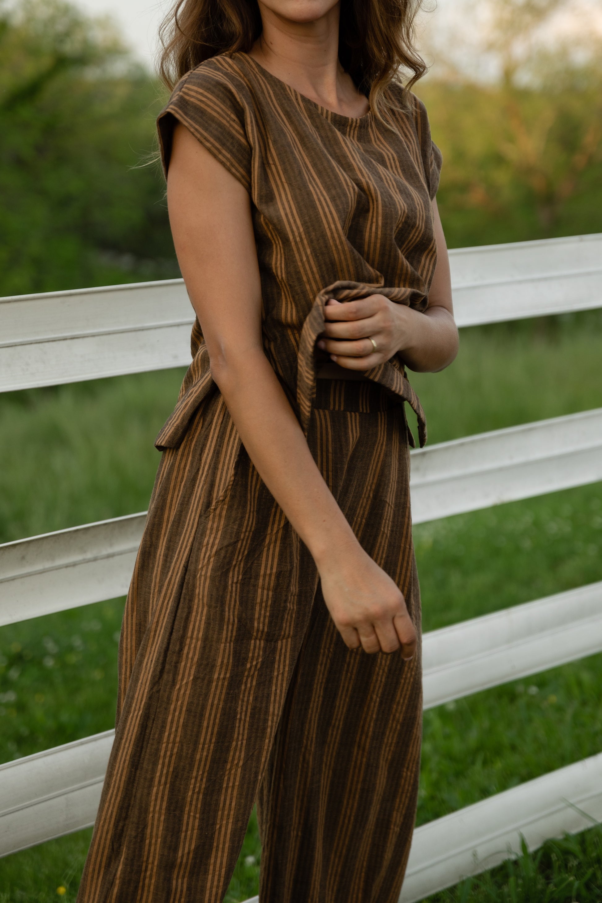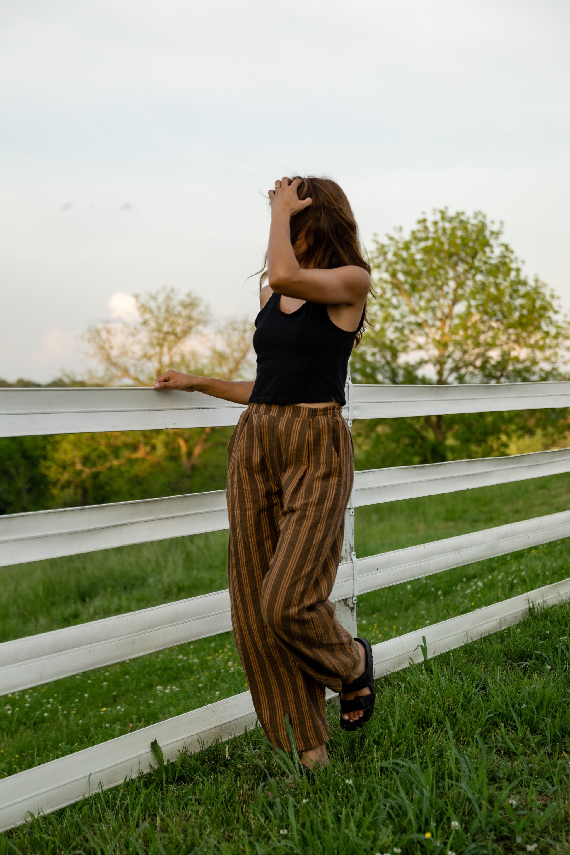 Katie Handwoven Cotton Pants in Brown and Mustard Stripe Made to Order