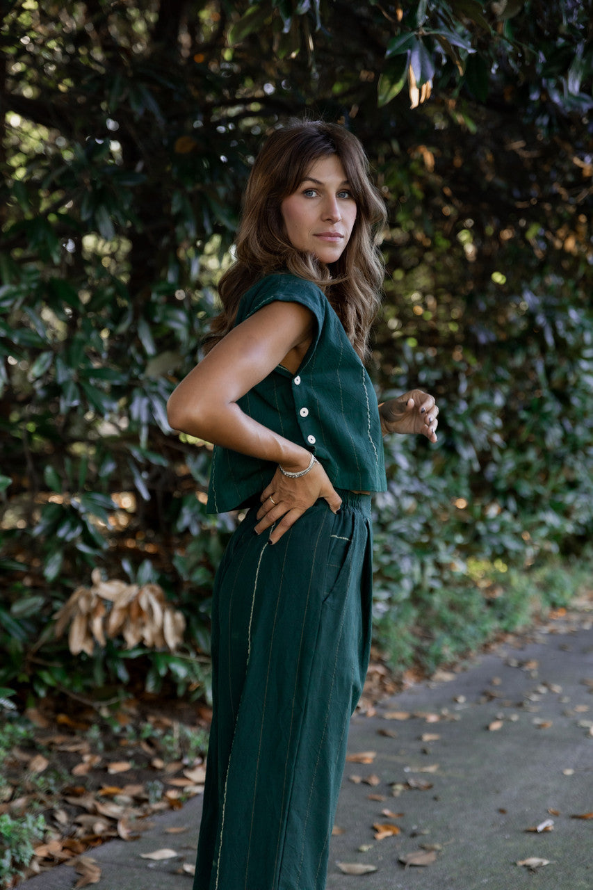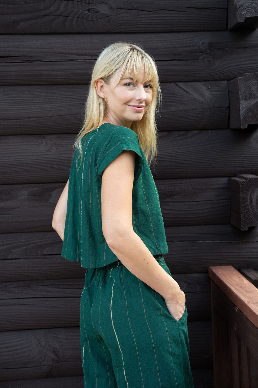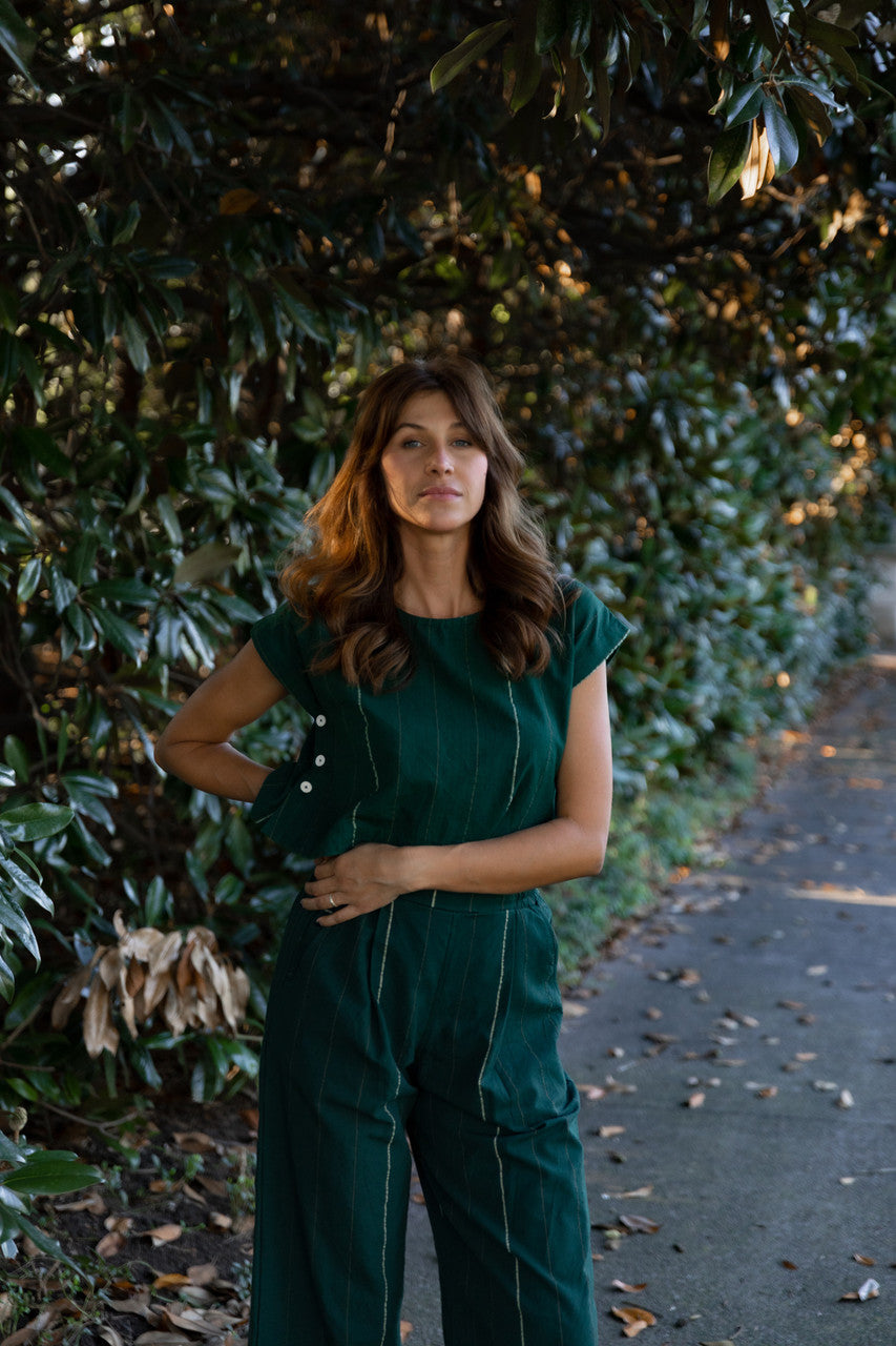 Katie Handwoven Cotton Set in Dark Green Made to Order