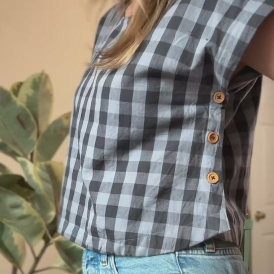 Katie Handwoven Cotton Shirt in Navy Gingham
