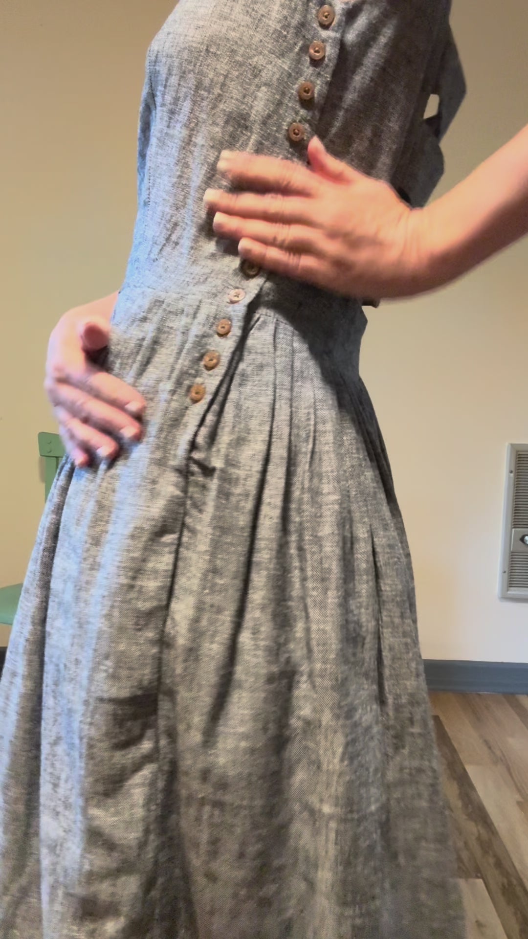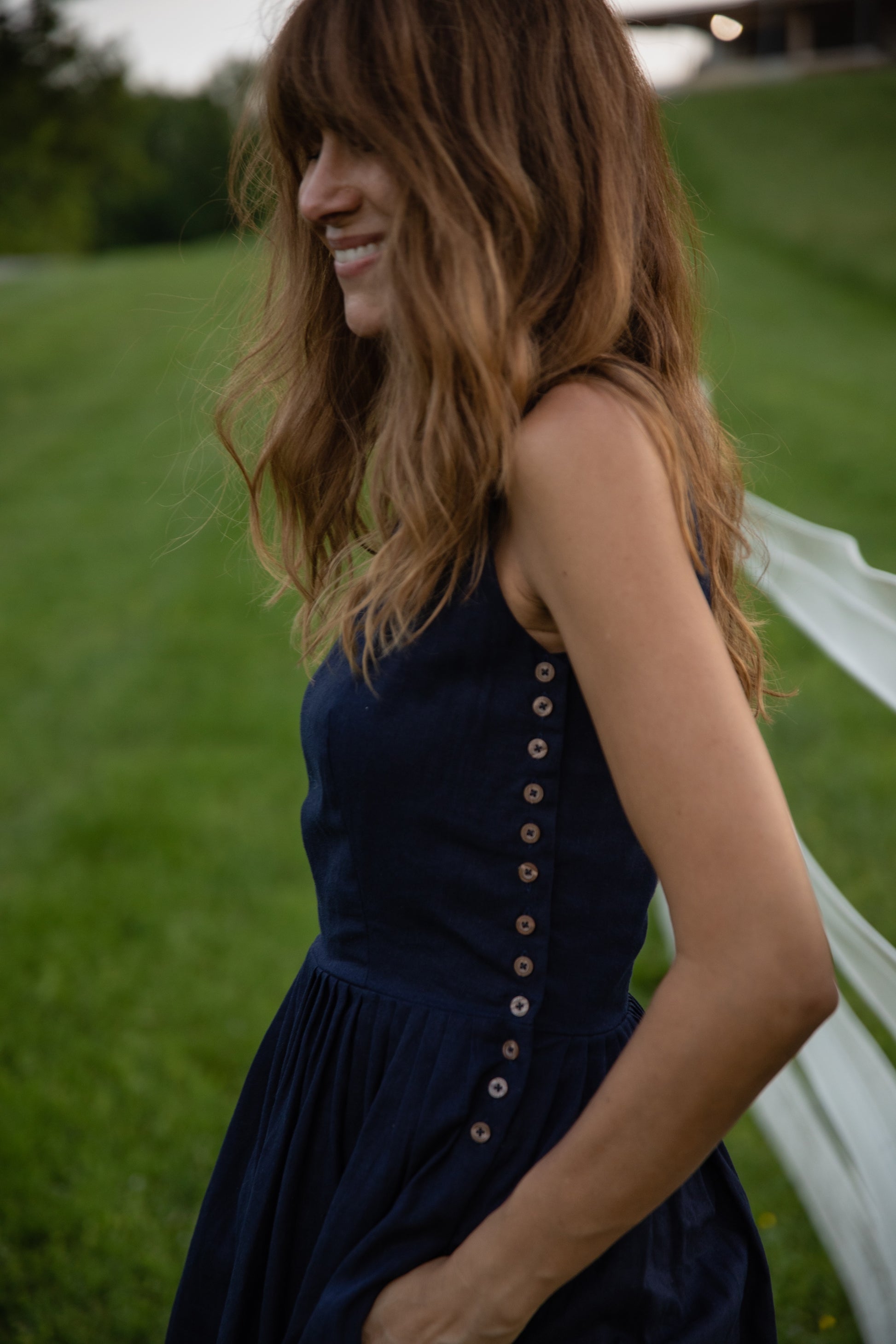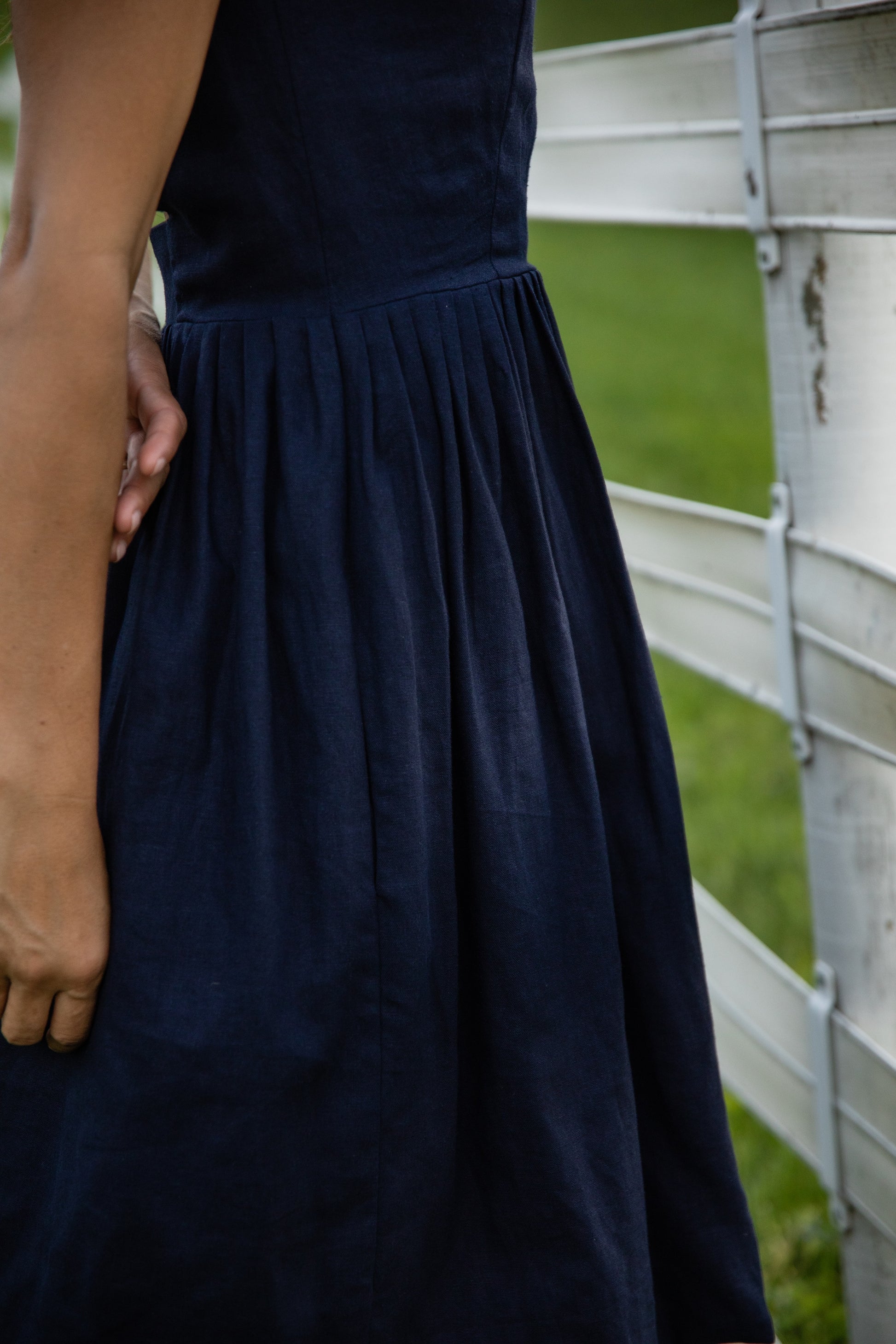 Love this dress! It’s so flattering, comfortable and the blue color and design details make it chic. Plus: POCKETS. We love a good set of pockets in a dress! My only complaint: the small buttons up the side of the bodice are pretty difficult to do up. I couldn’t do it without assistance.