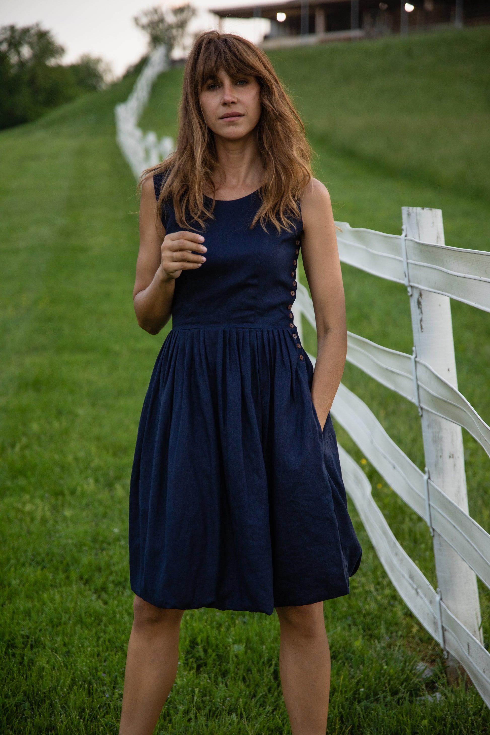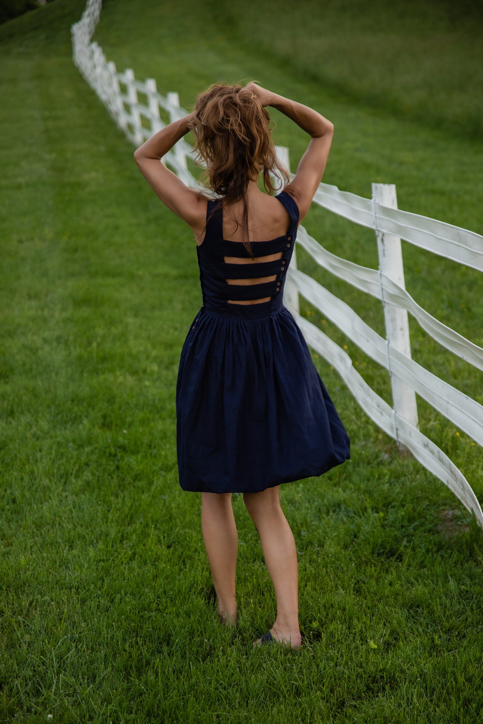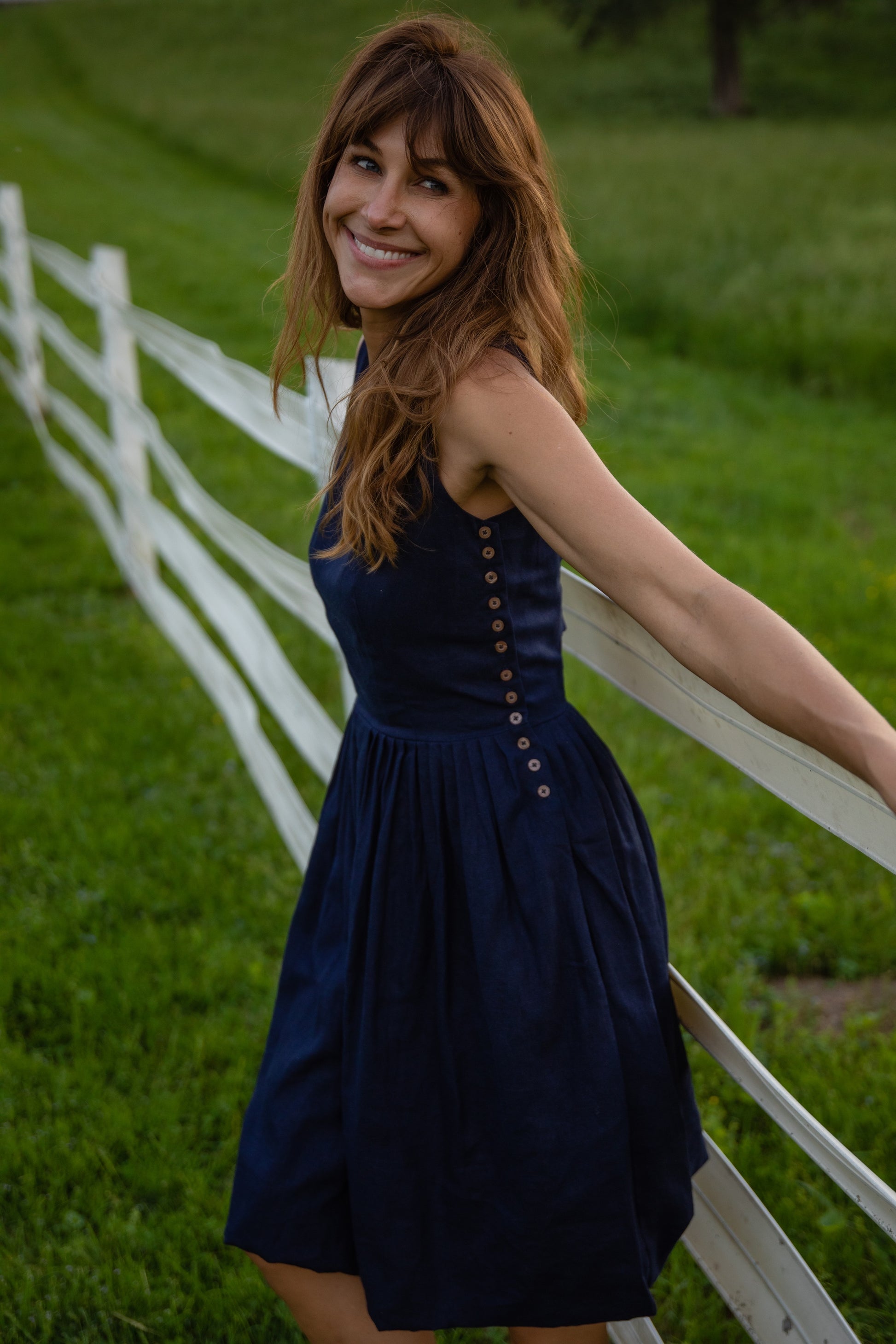 Love this dress! It’s so flattering, comfortable and the blue color and design details make it chic. Plus: POCKETS. We love a good set of pockets in a dress! My only complaint: the small buttons up the side of the bodice are pretty difficult to do up. I couldn’t do it without assistance.