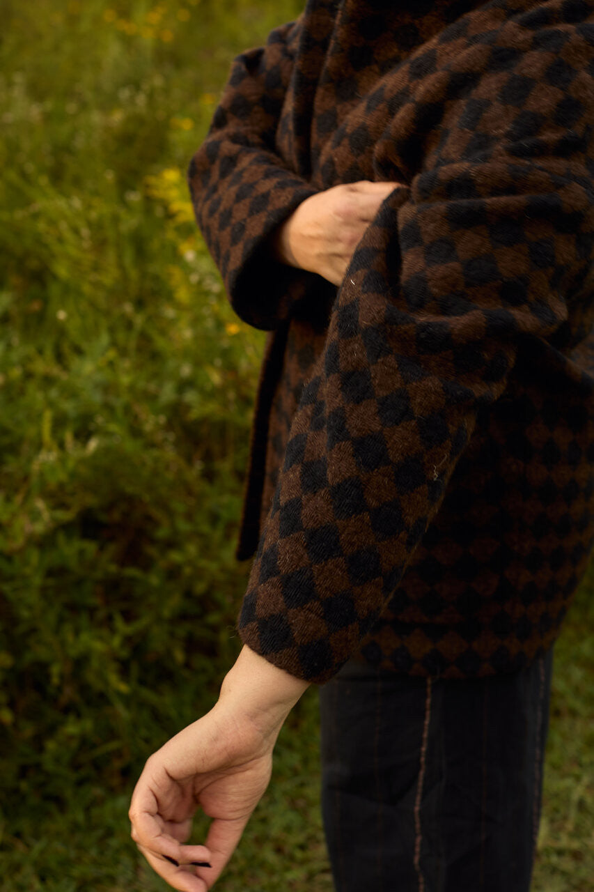 Portuguese Wool Pieper Coat in Black and Brown Check Made to Order