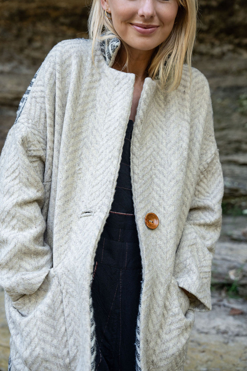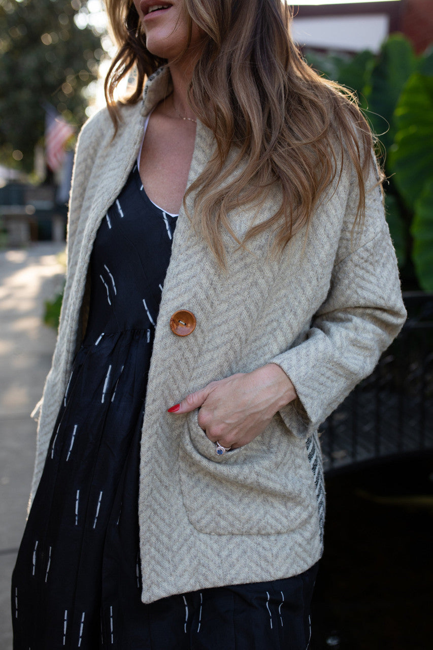 Portuguese Wool Pieper Coat in Cream Herringbone Made to Order