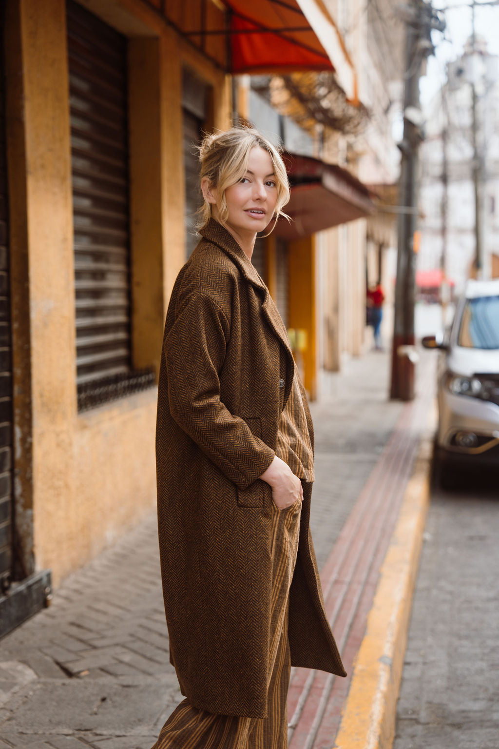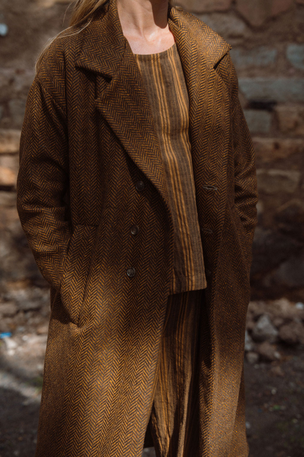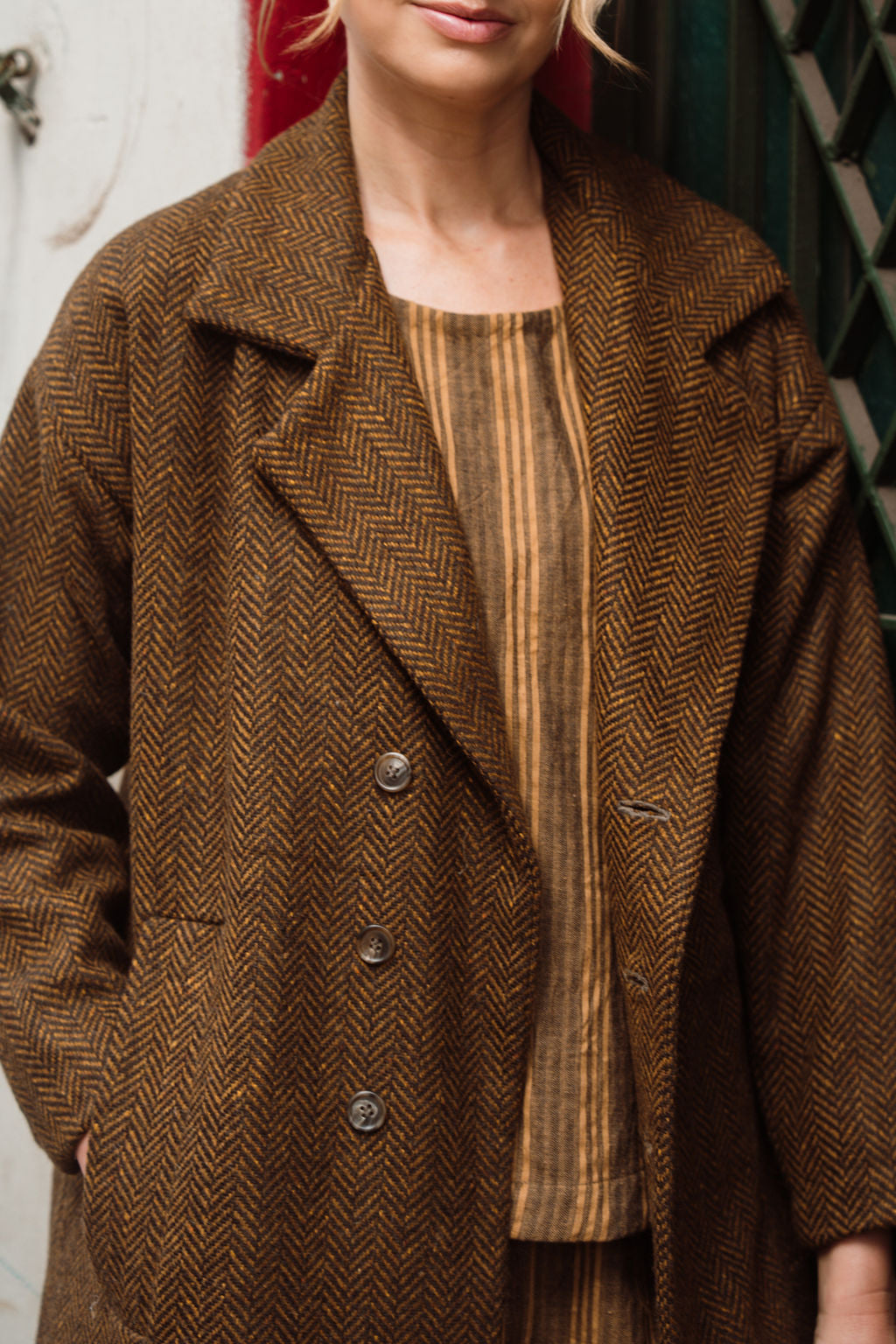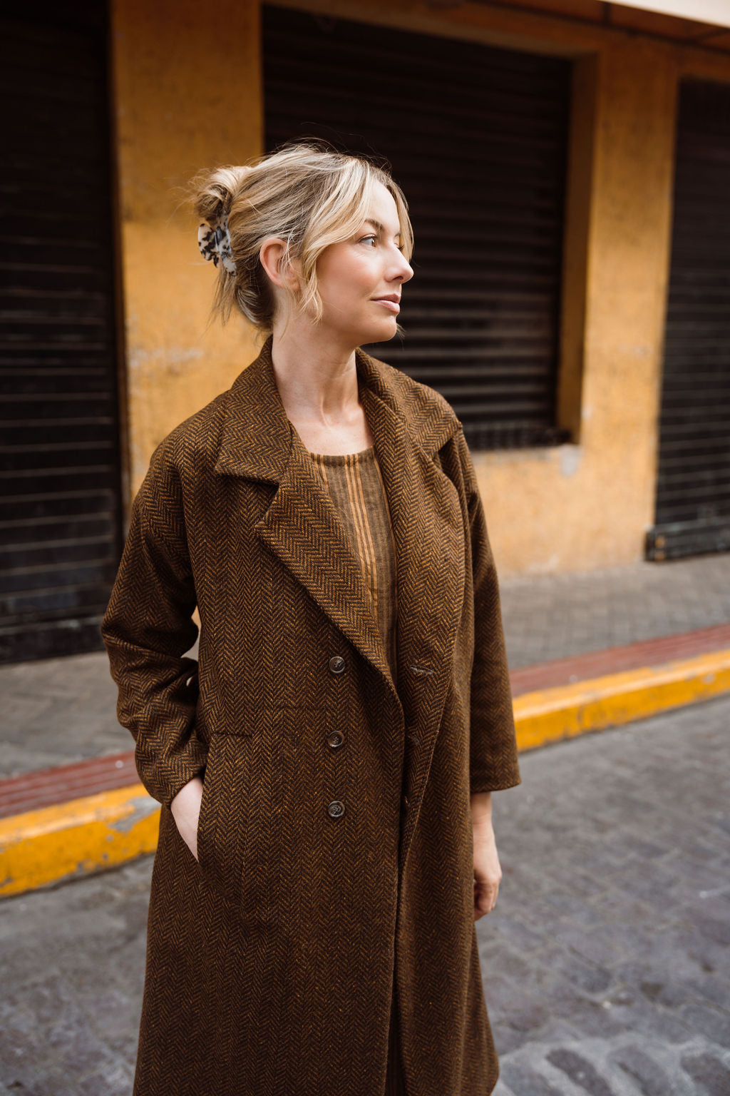 Portuguese Wool Polly Coat in Black and Brown Small Herringbone Made to Order
