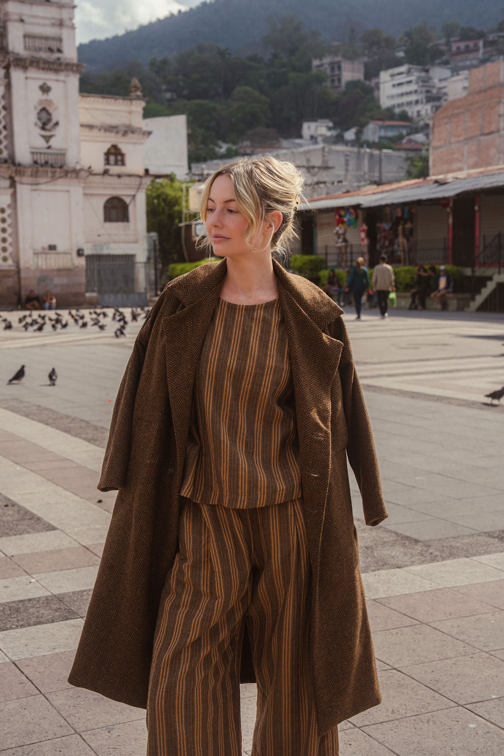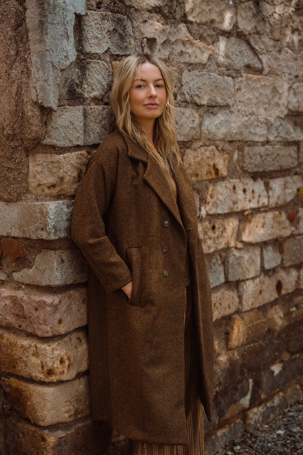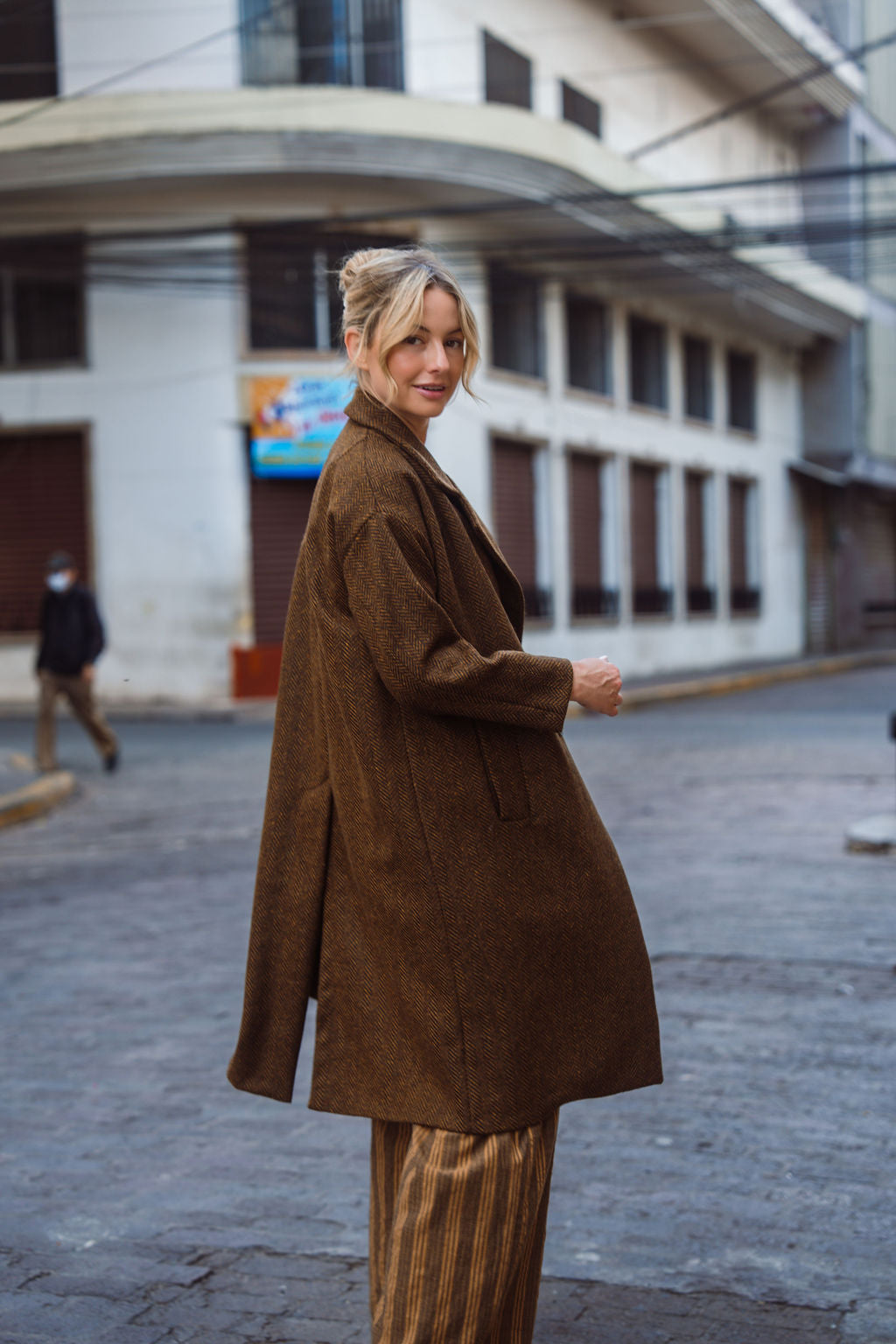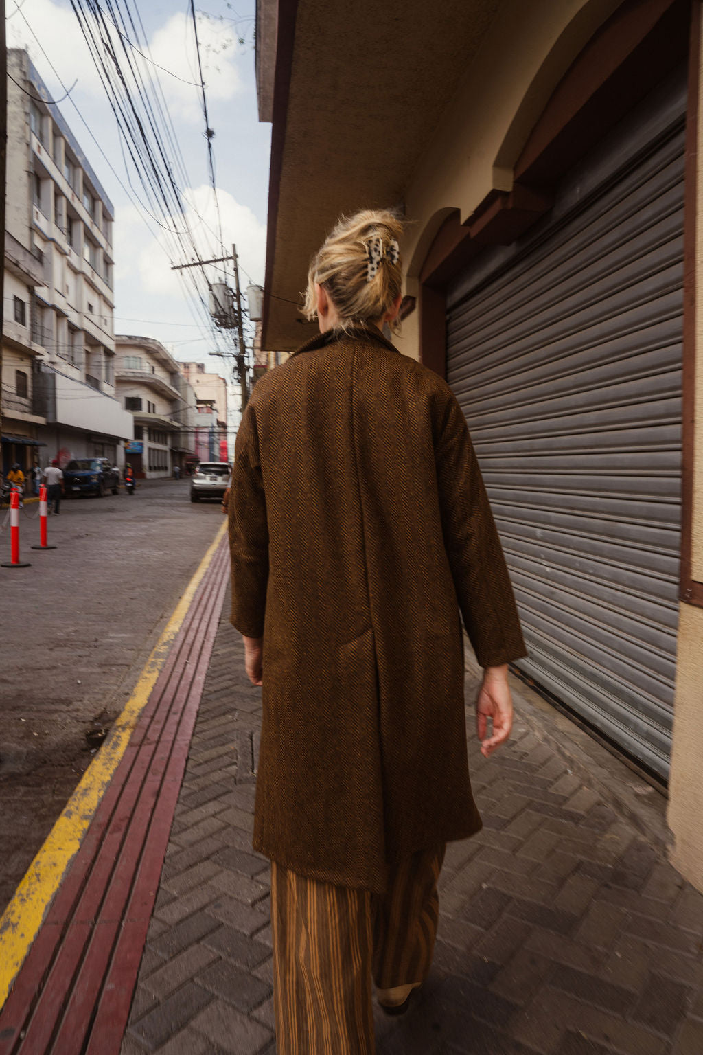 Portuguese Wool Polly Coat in Black and Brown Small Herringbone Made to Order