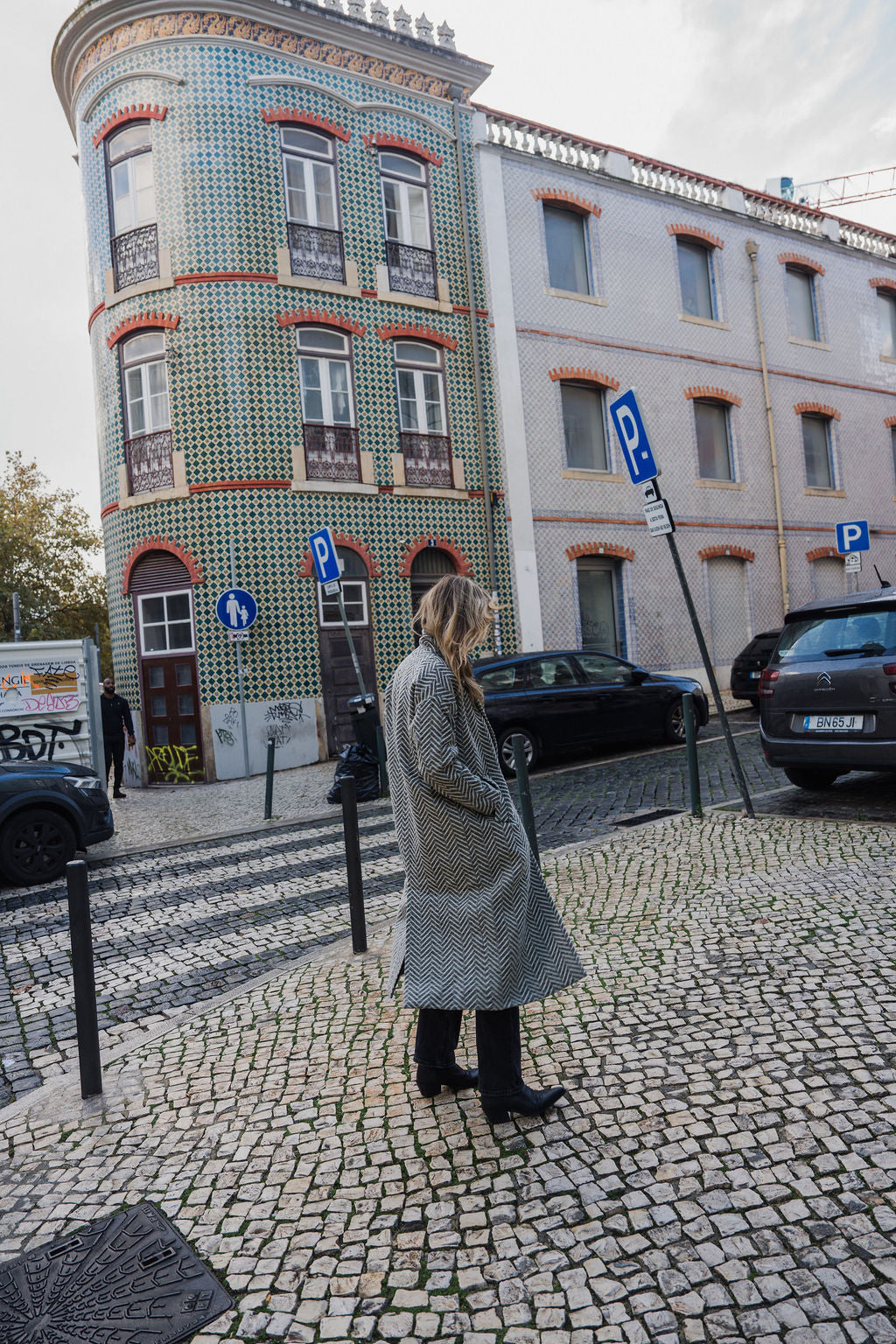 Portuguese Wool Polly Coat in Black and White Herringbone Made to Order