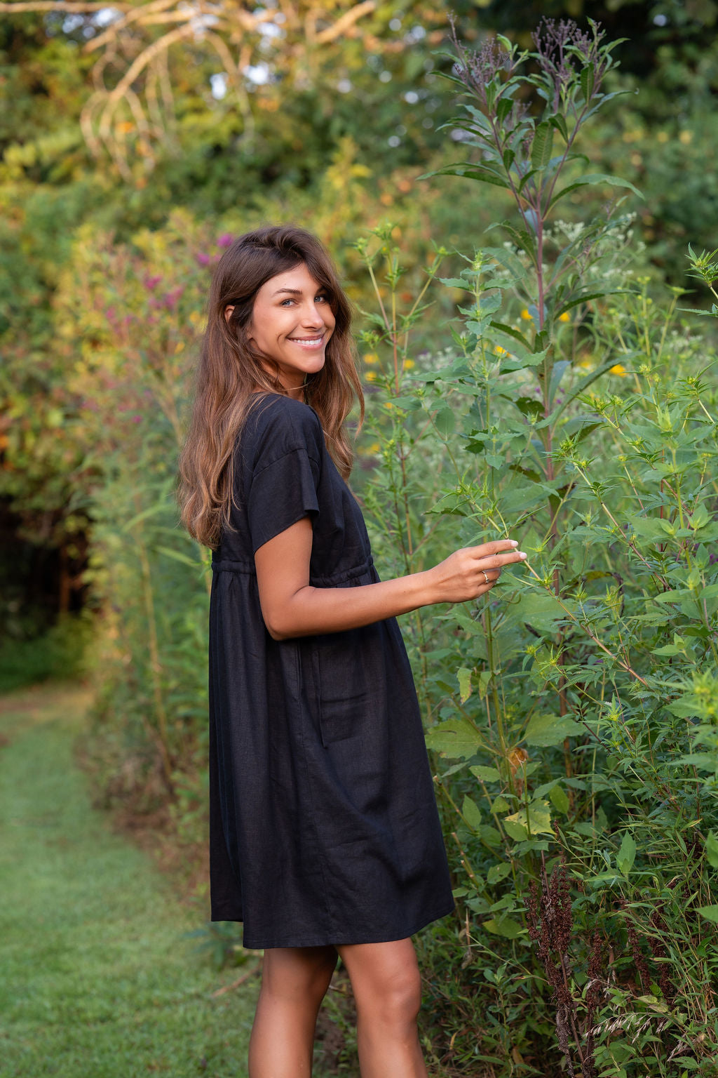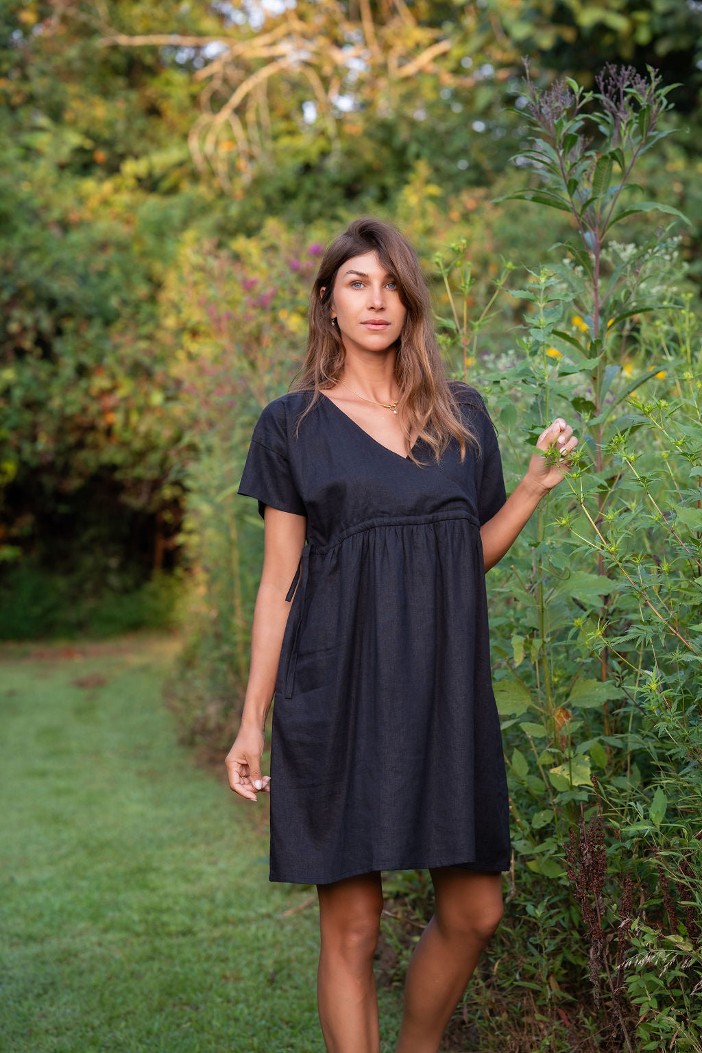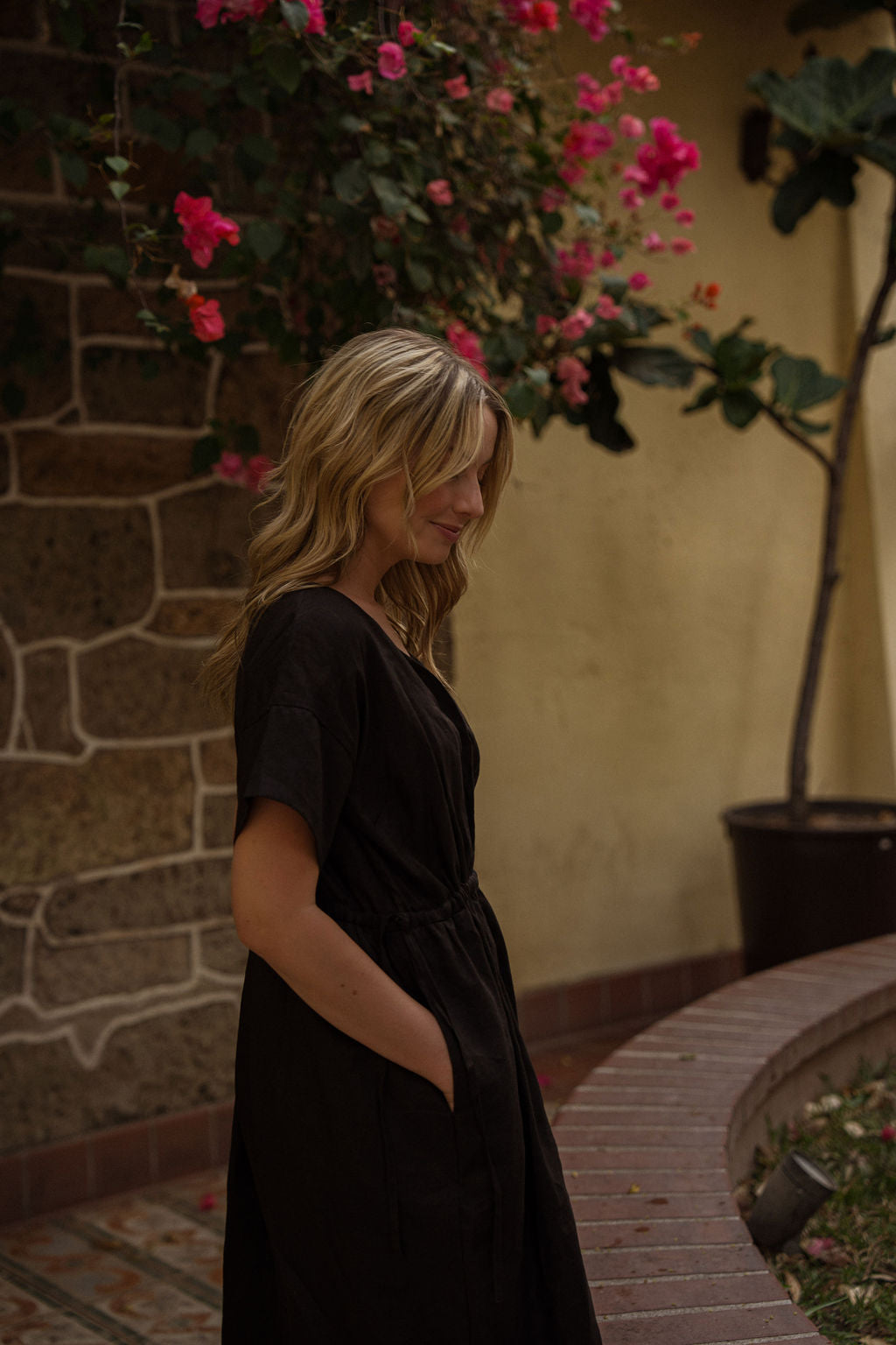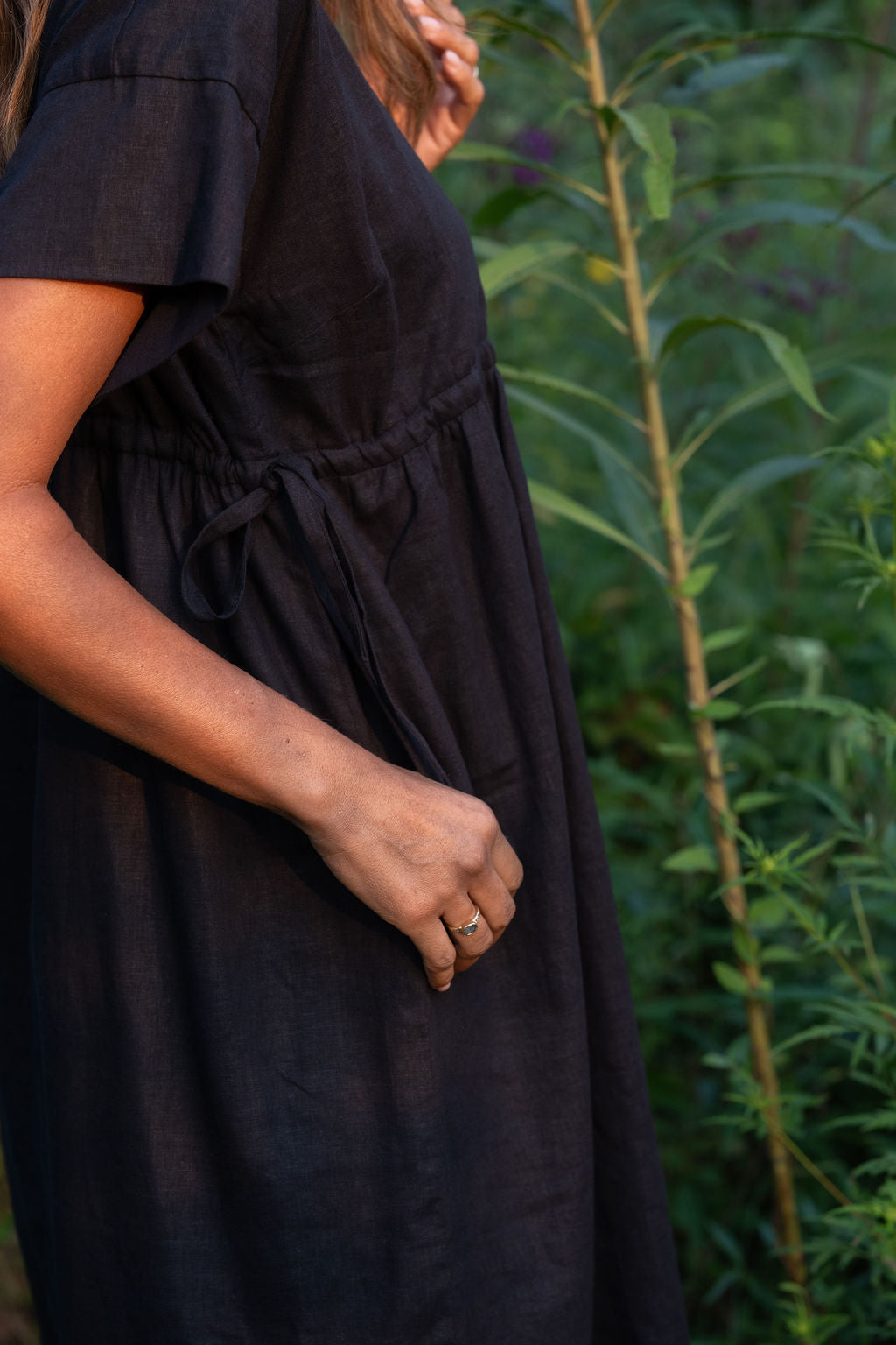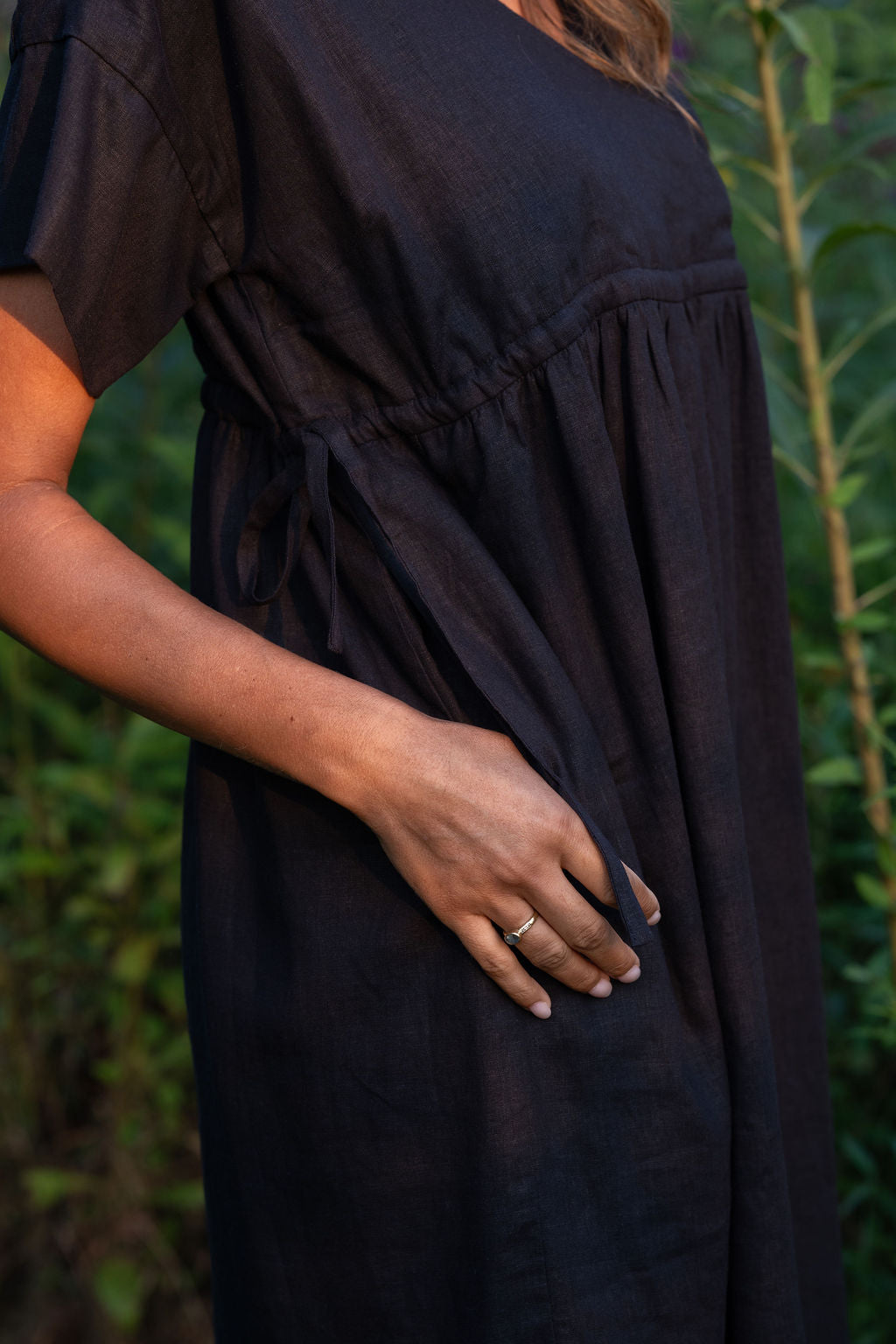 Designed to be an easy summer dress with drawstring waist and pockets in the loveliest lightweight linen.