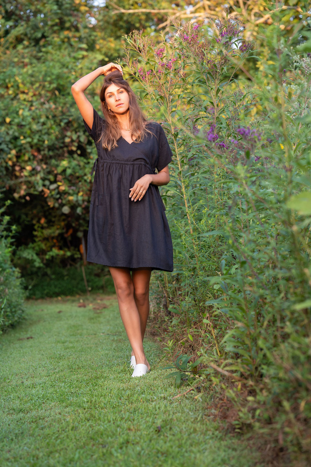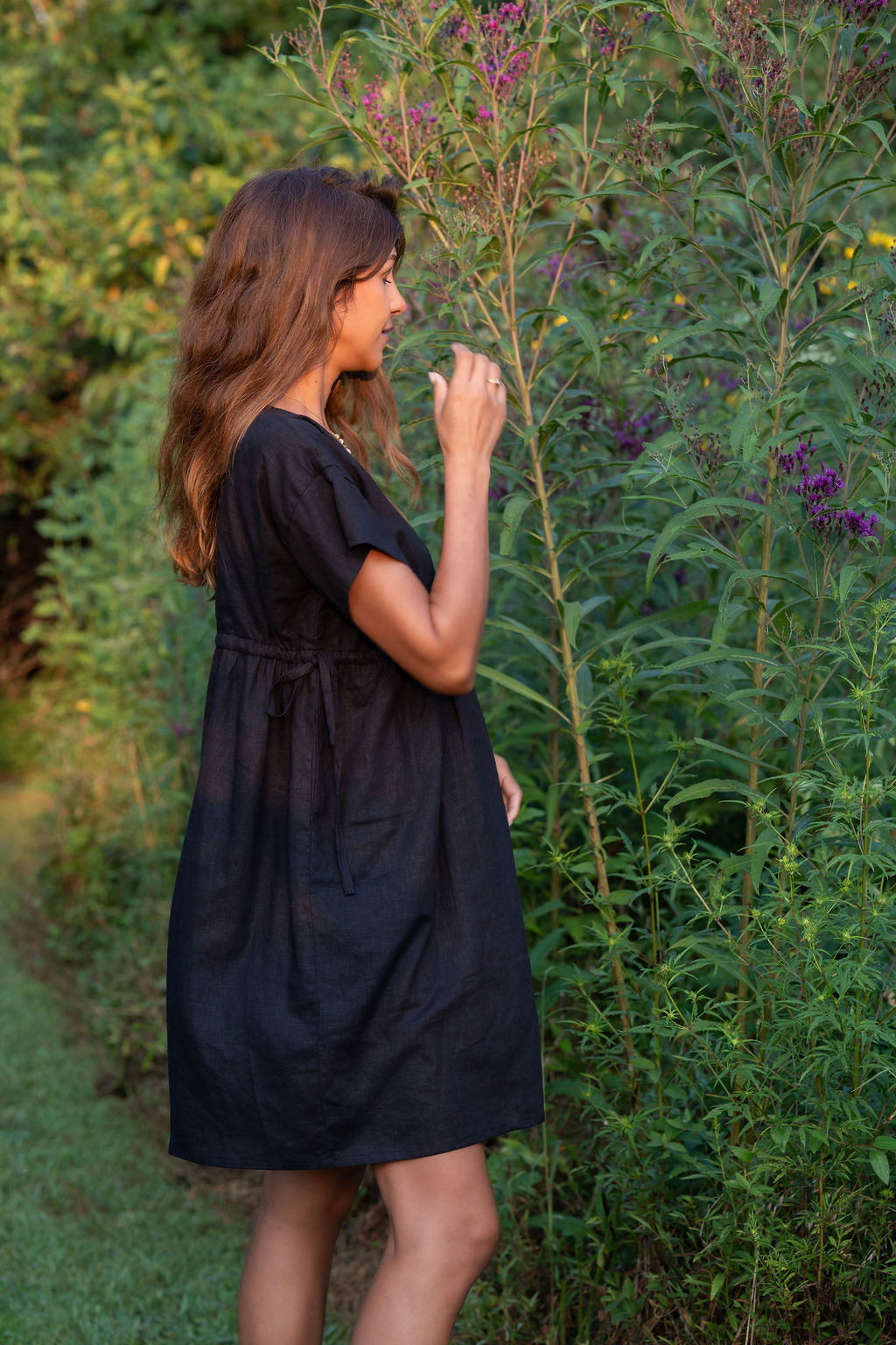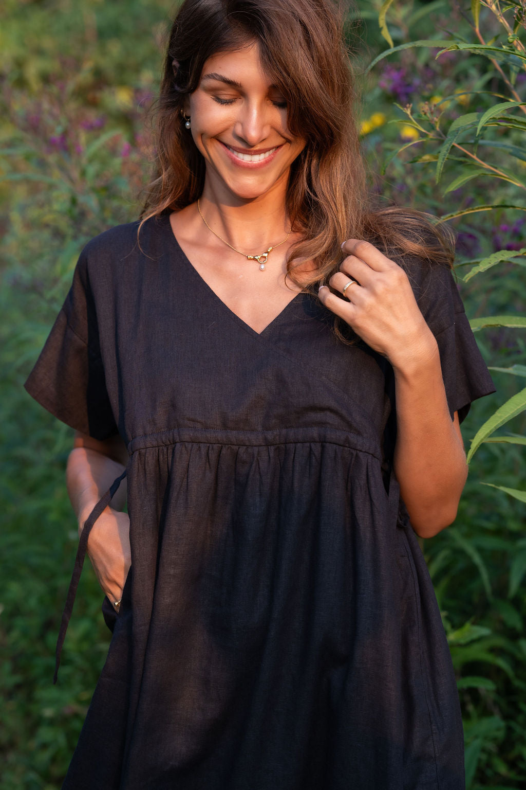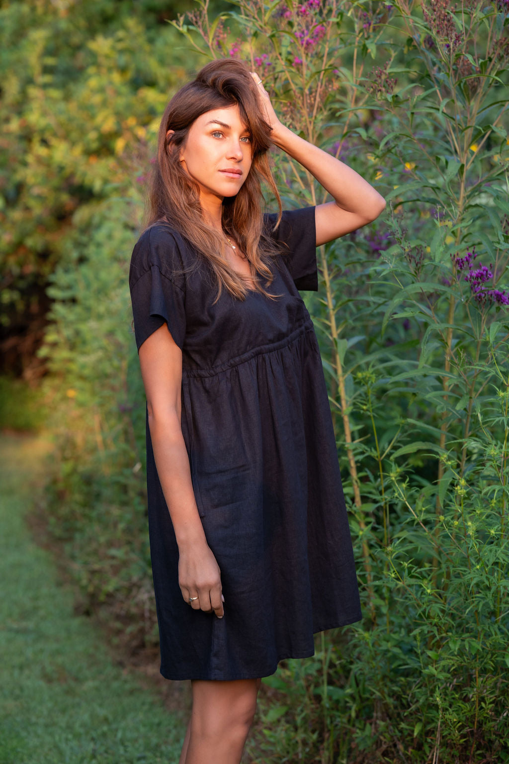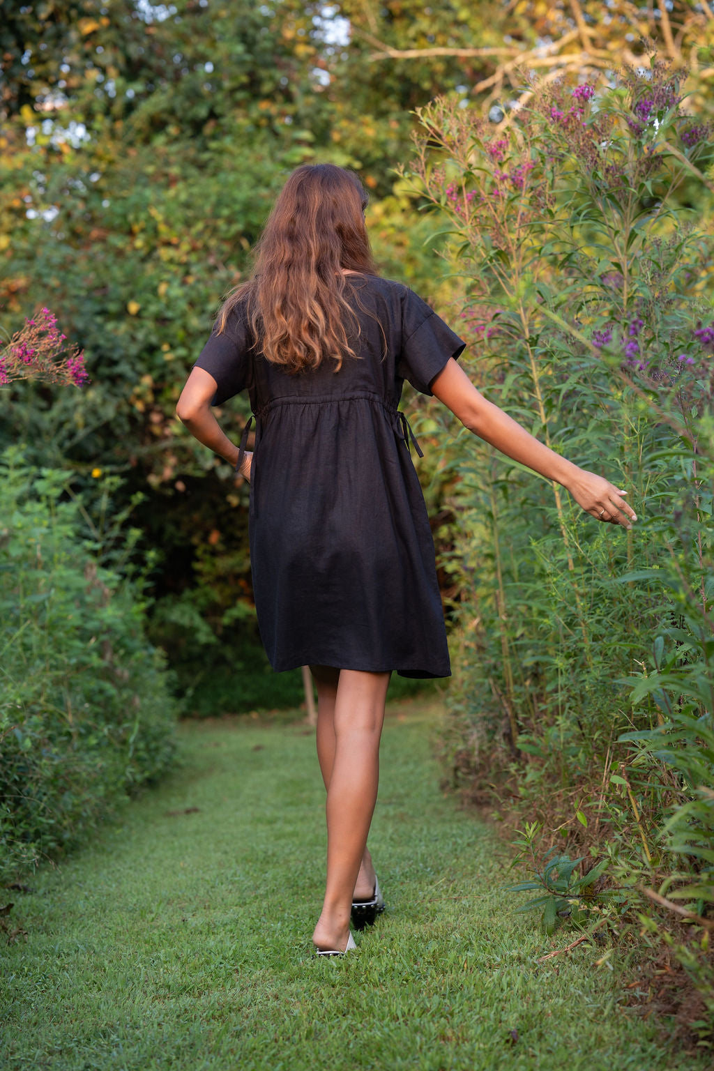 Designed to be an easy summer dress with drawstring waist and pockets in the loveliest lightweight linen.