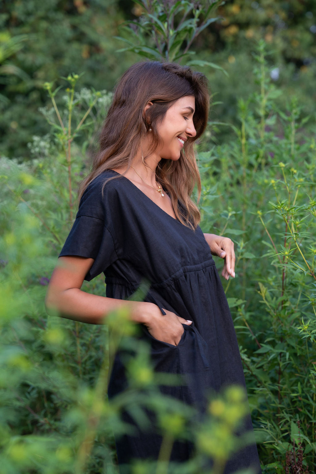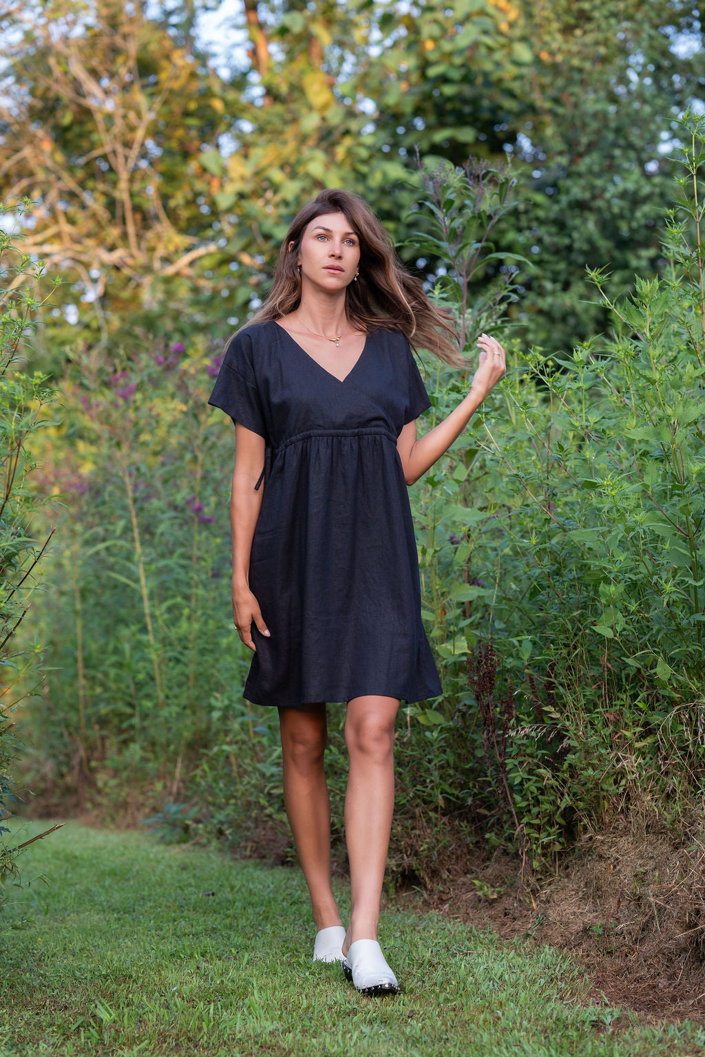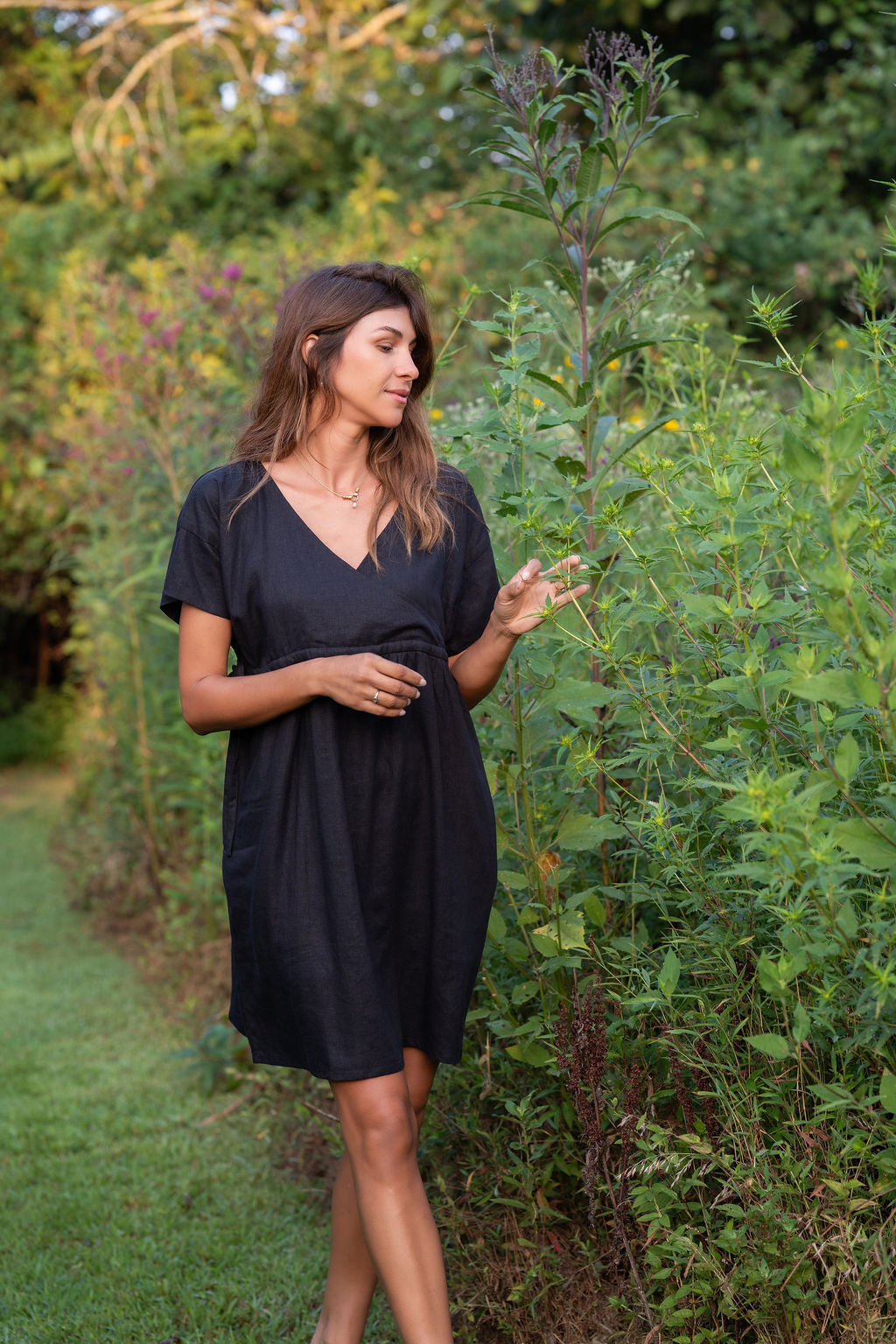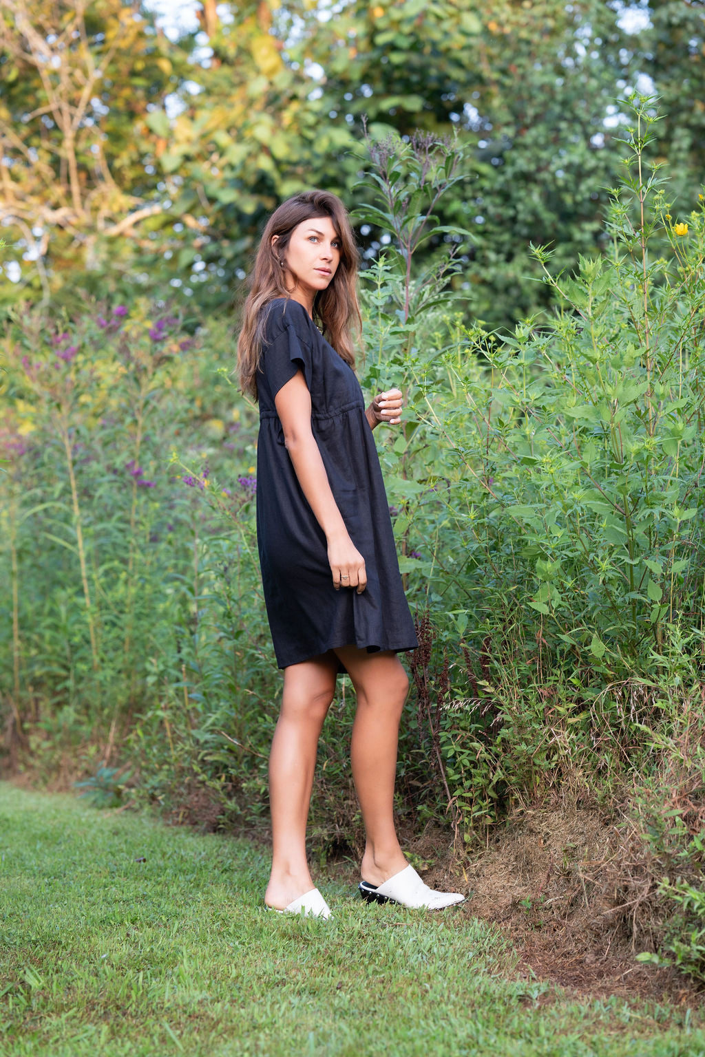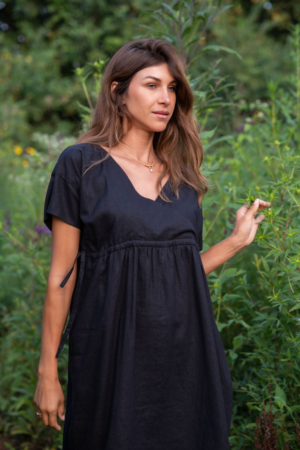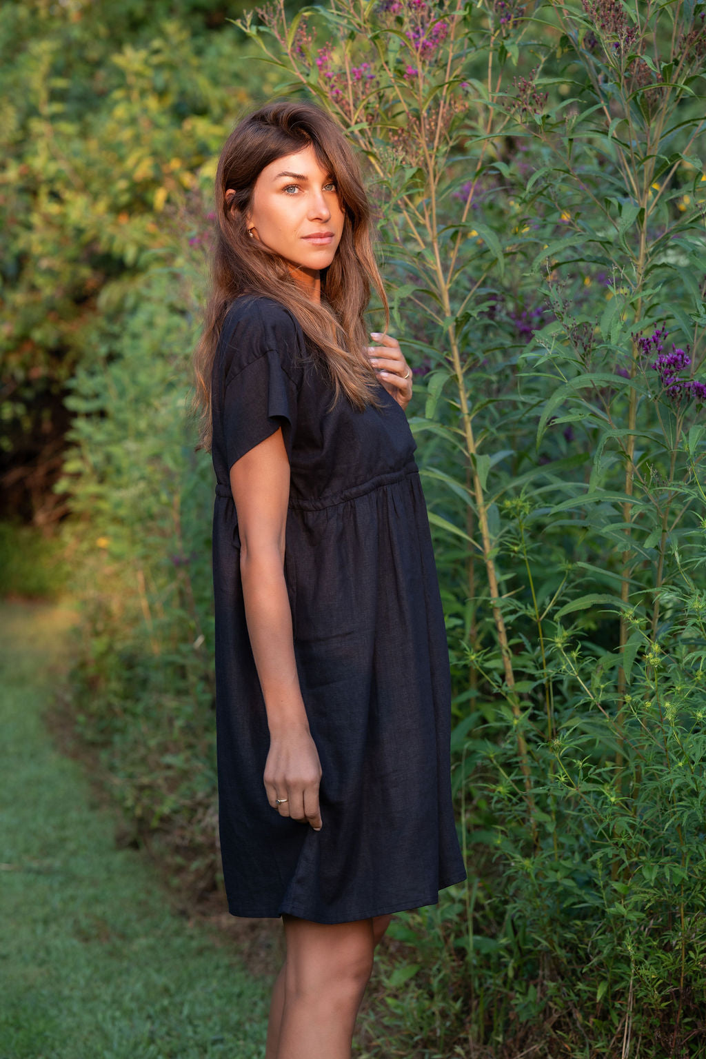 Designed to be an easy summer dress with drawstring waist and pockets in the loveliest lightweight linen.