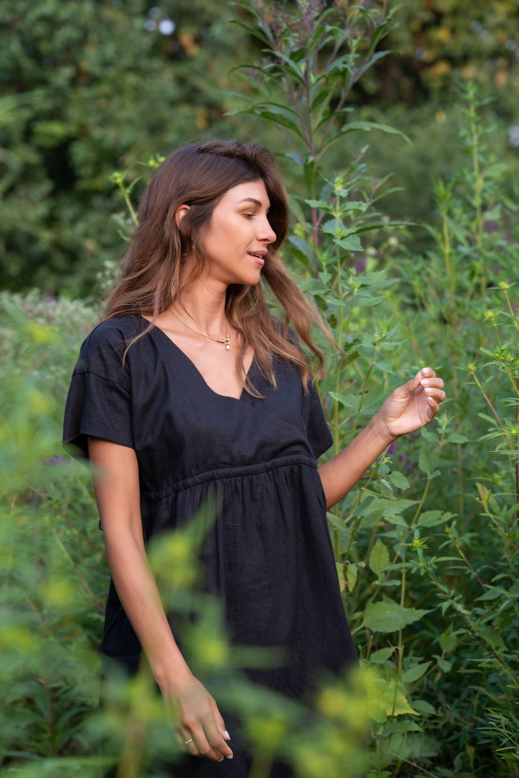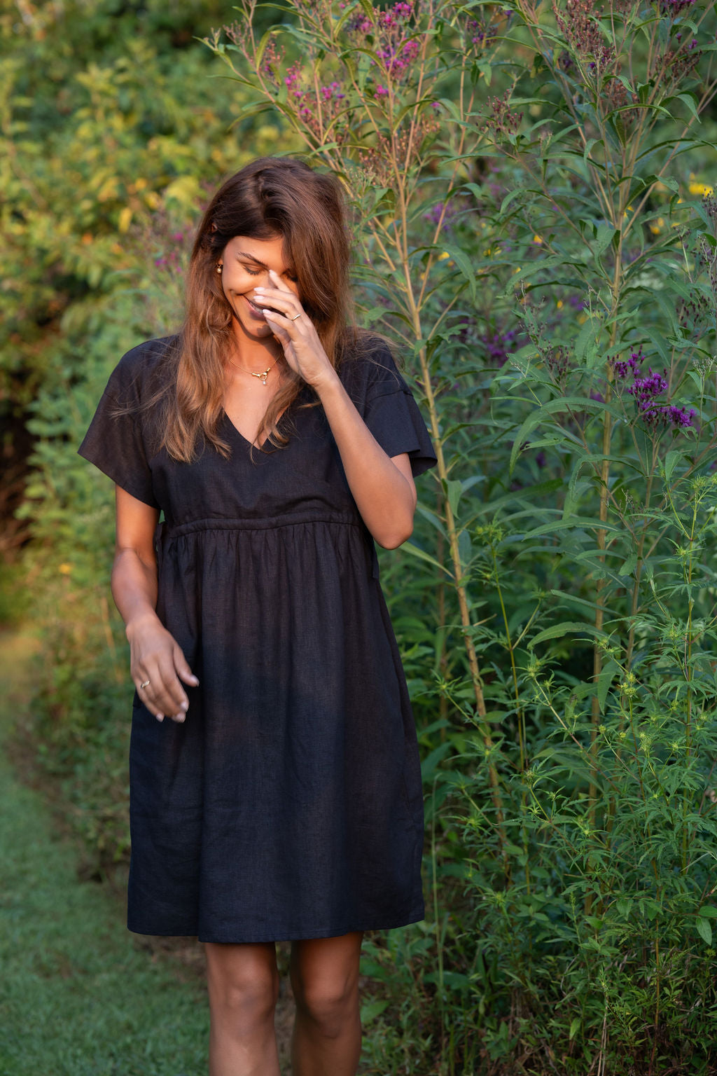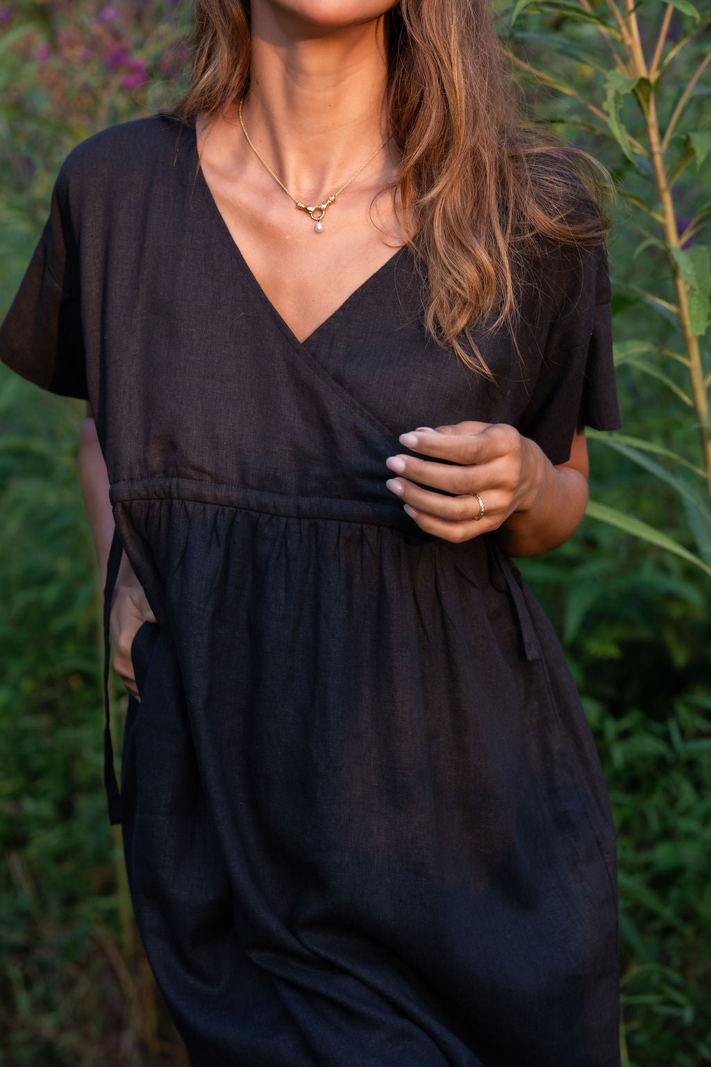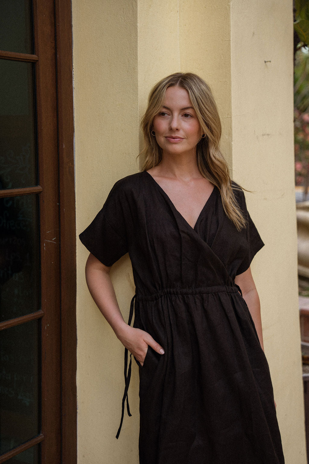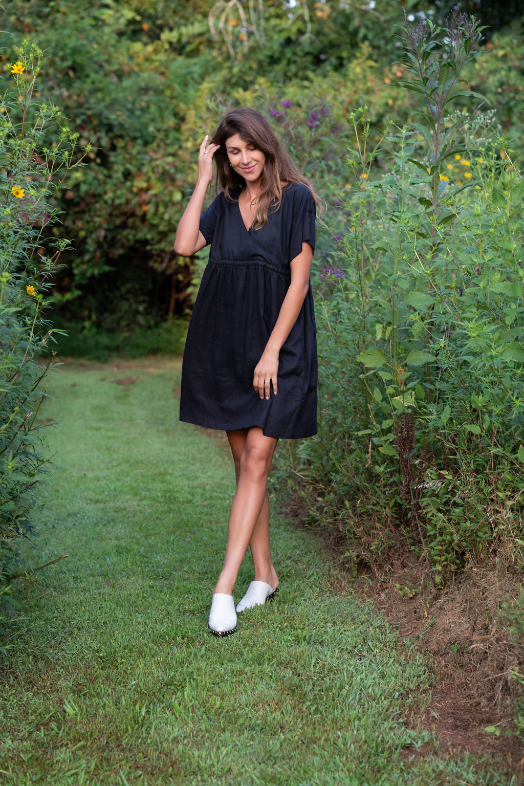 Designed to be an easy summer dress with drawstring waist and pockets in the loveliest lightweight linen.