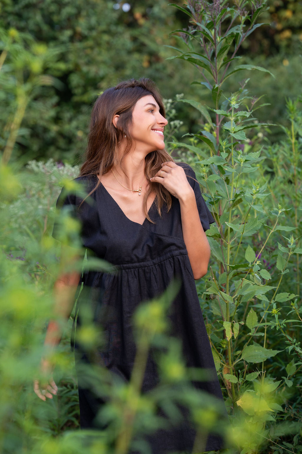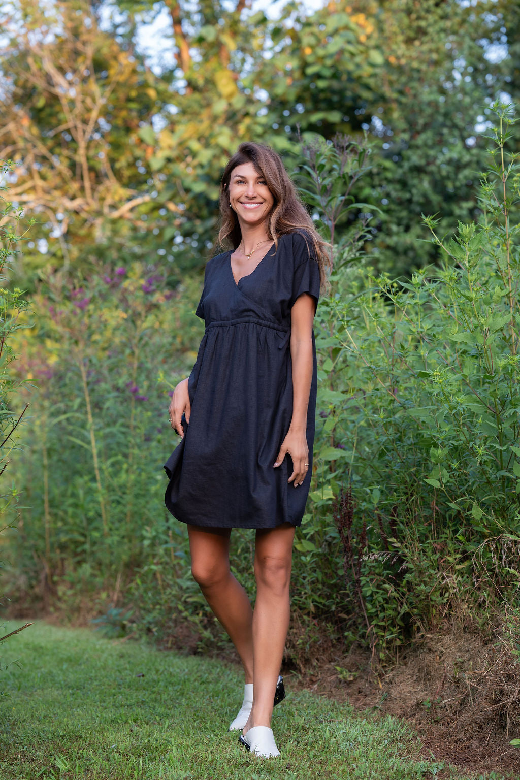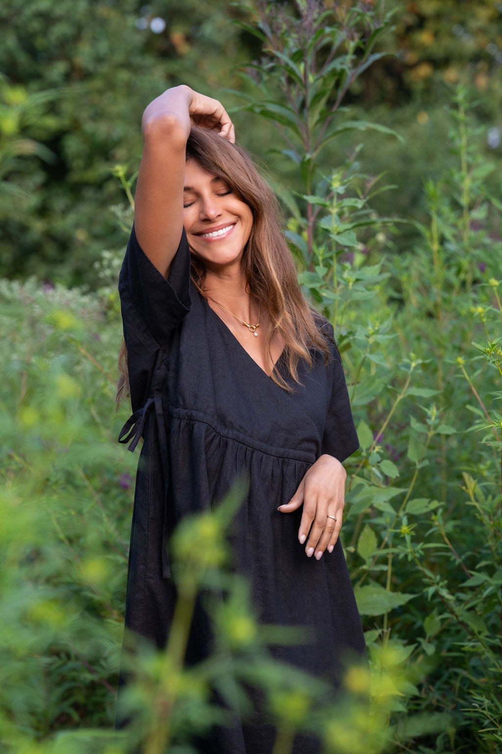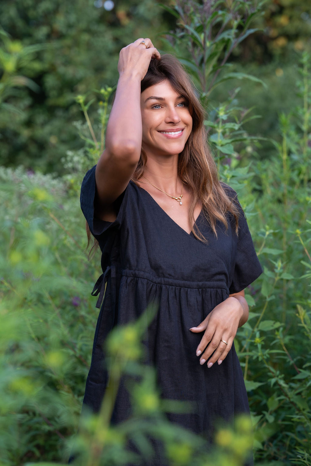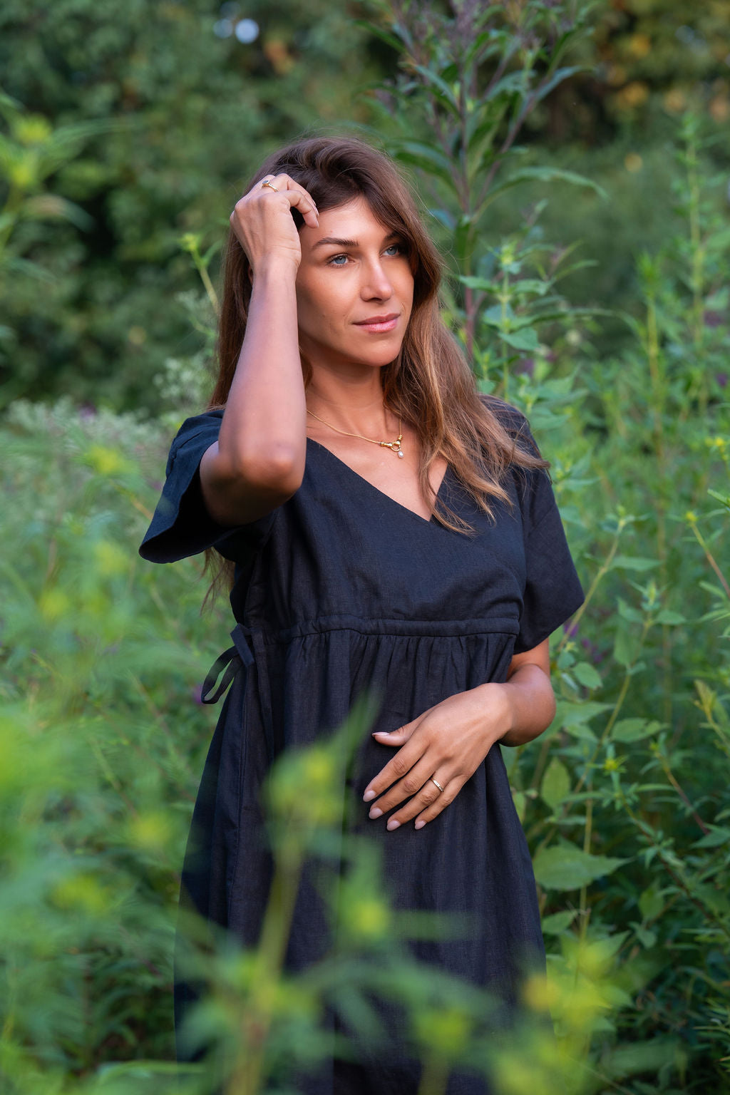Designed to be an easy summer dress with drawstring waist and pockets in the loveliest lightweight linen.