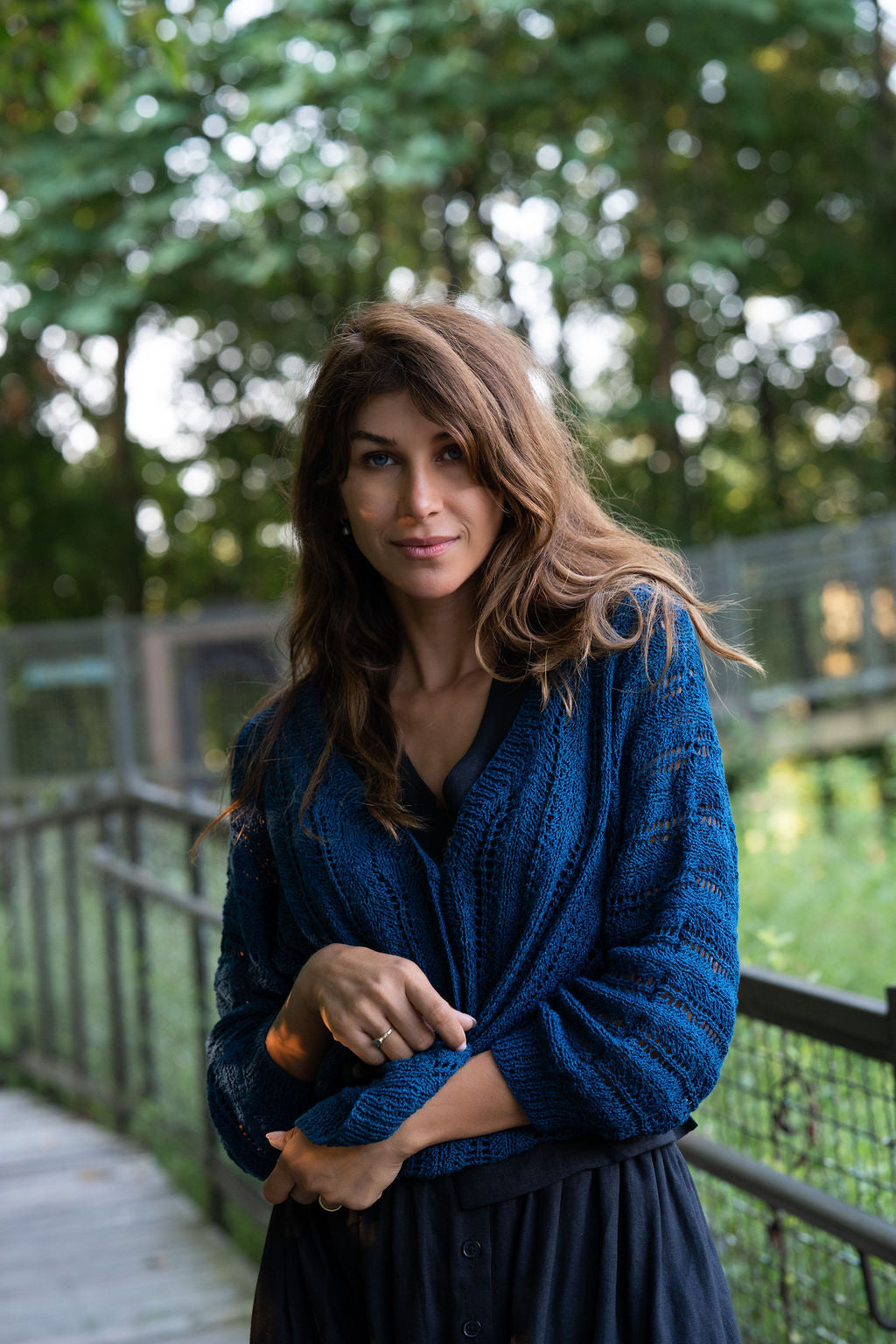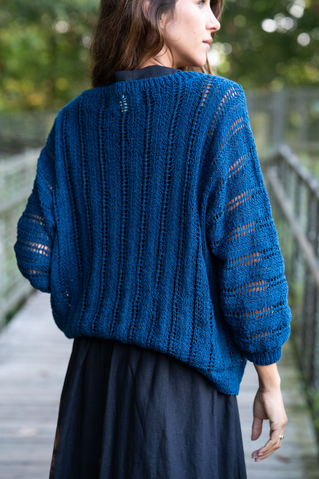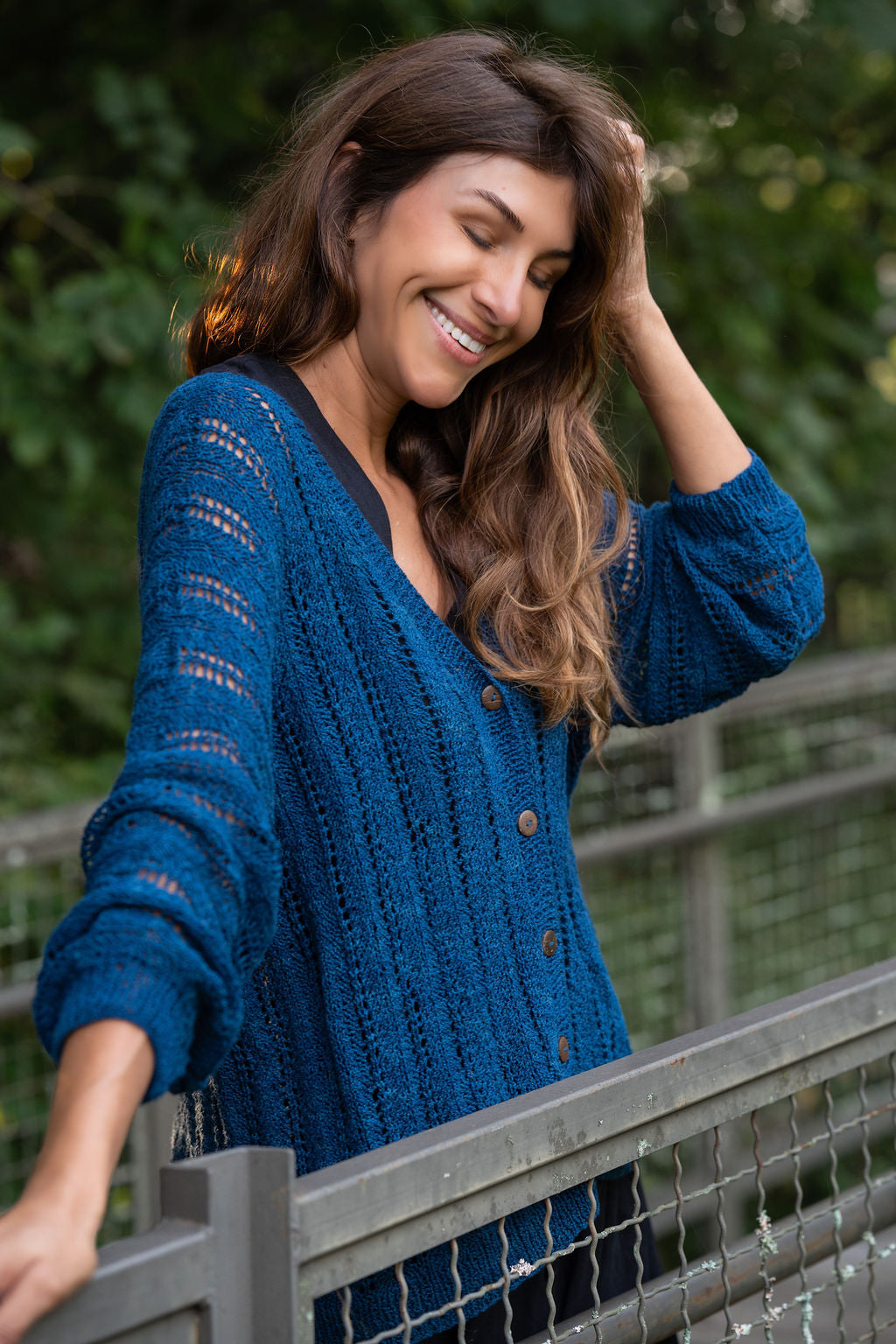 Trish Lace Cotton Sweater in Emerald Blue Made to Order