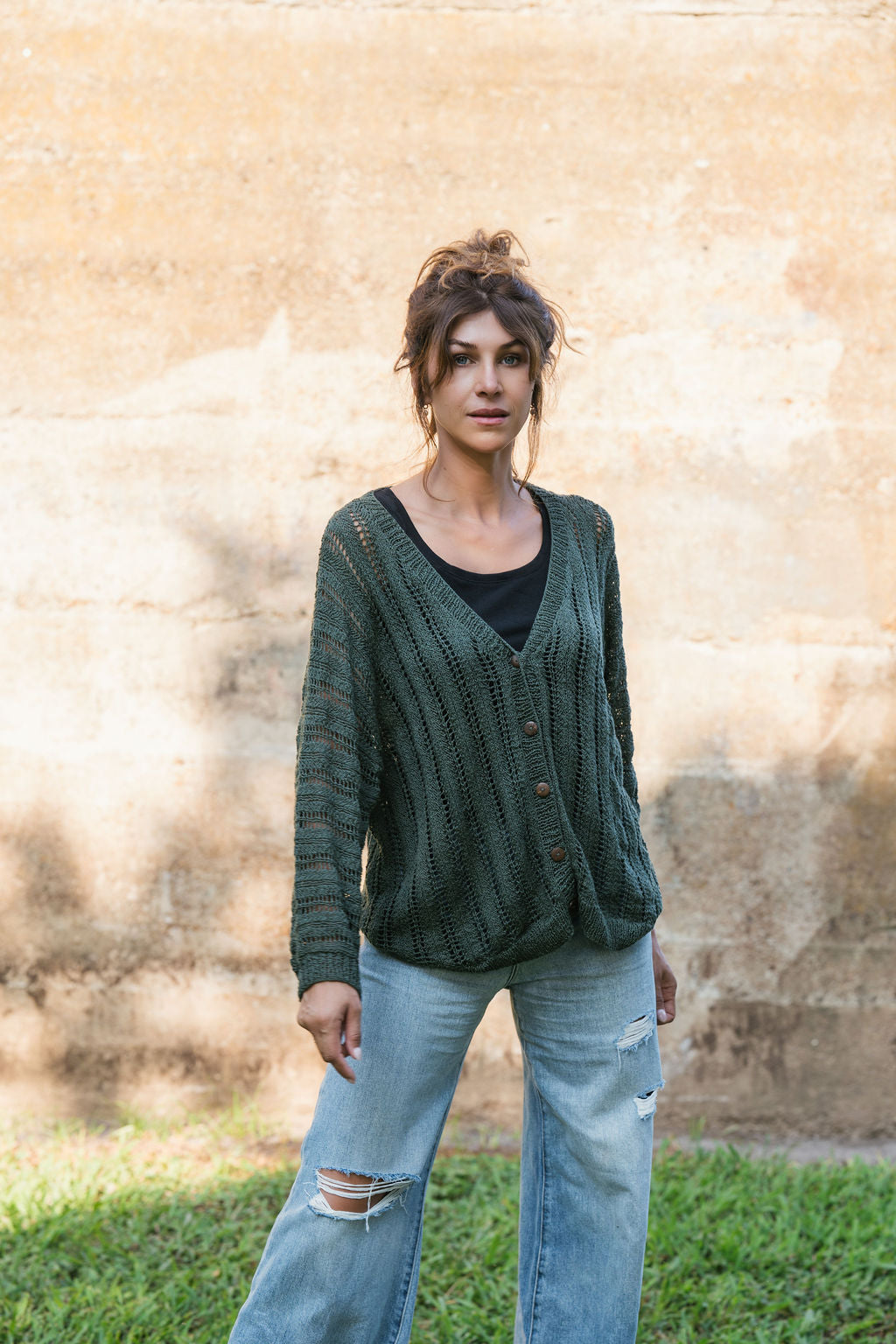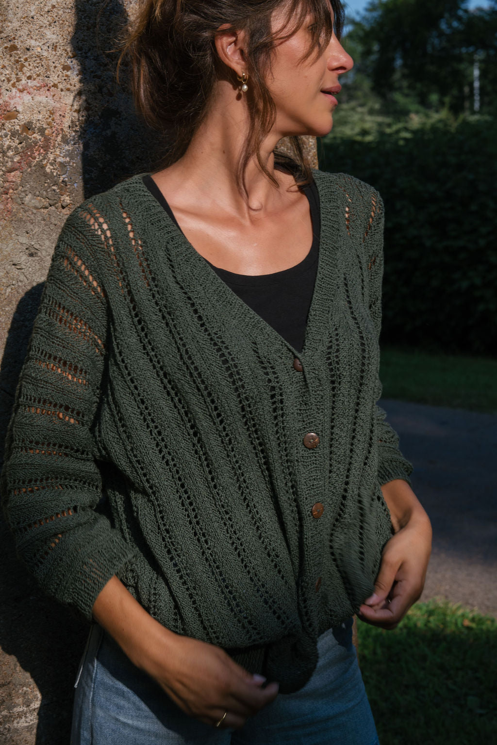 Lace knit cotton cardigan with an easy and loose fit.